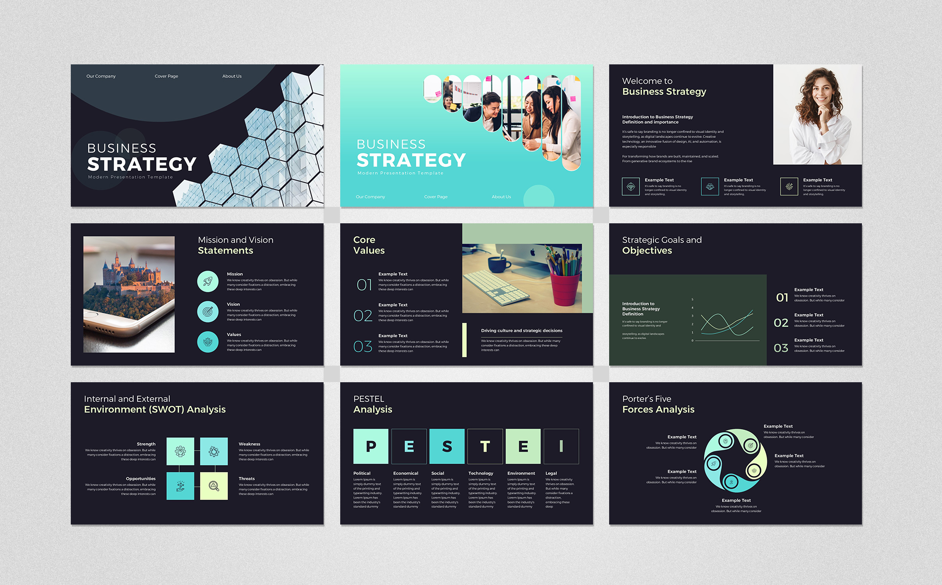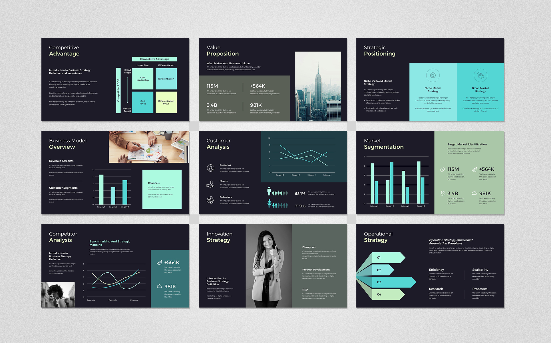 Modern Business Strategy PowerPoint – Vision, Goals and Competitive Analysis PowerPoint Template