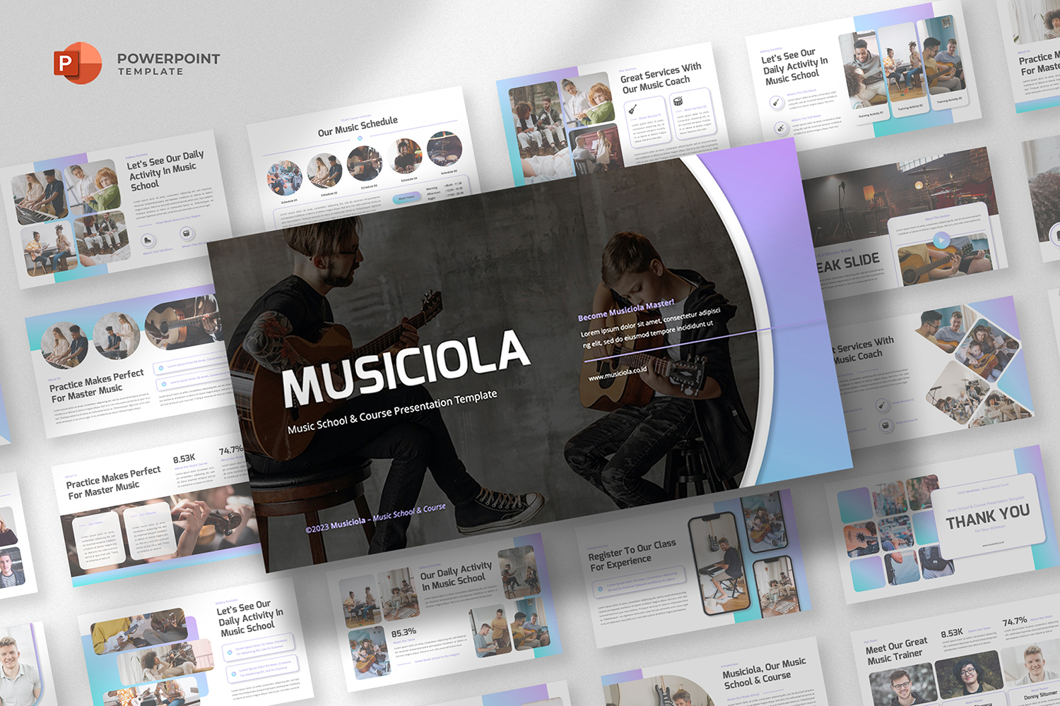 Musiciola - Music School & Course Powerpoint Template PowerPoint Template