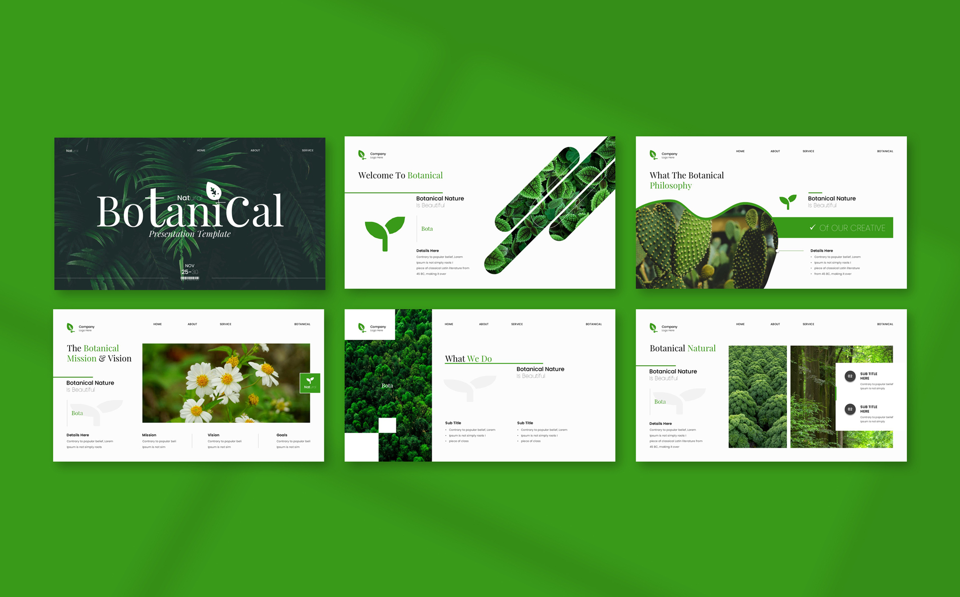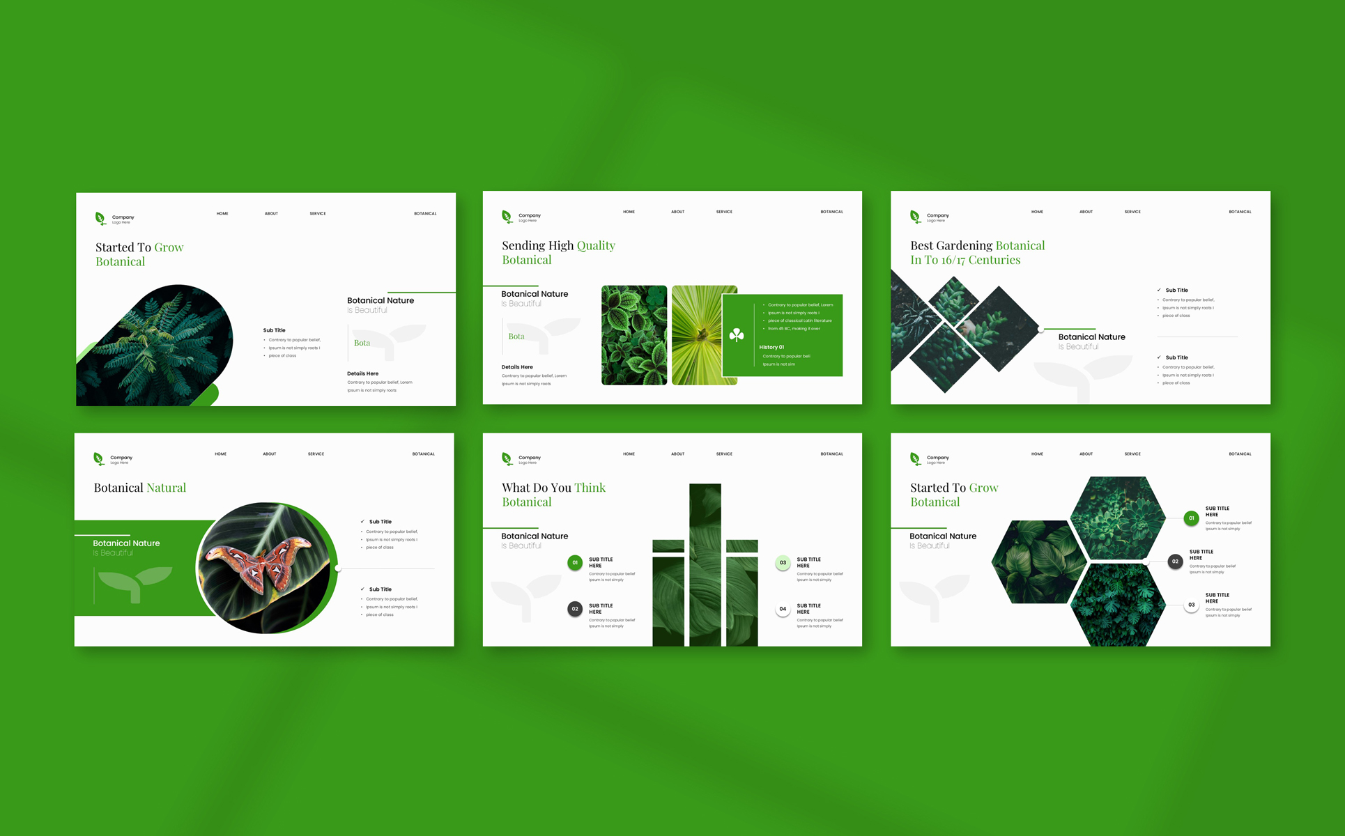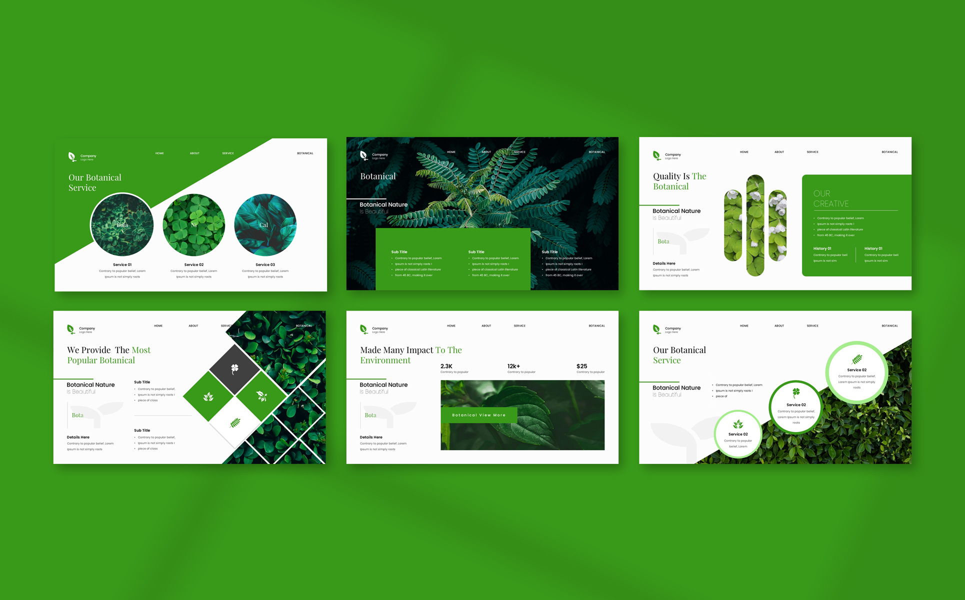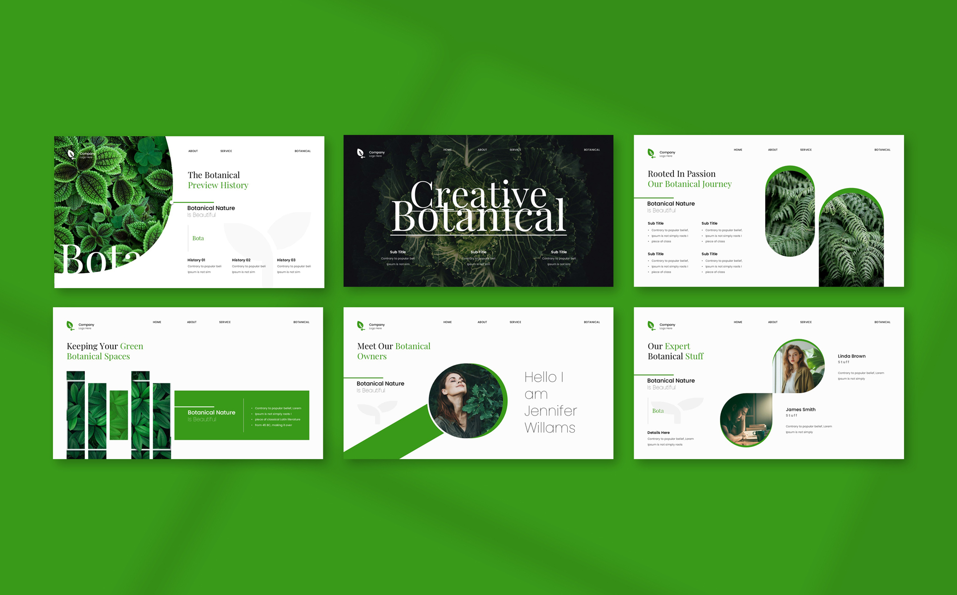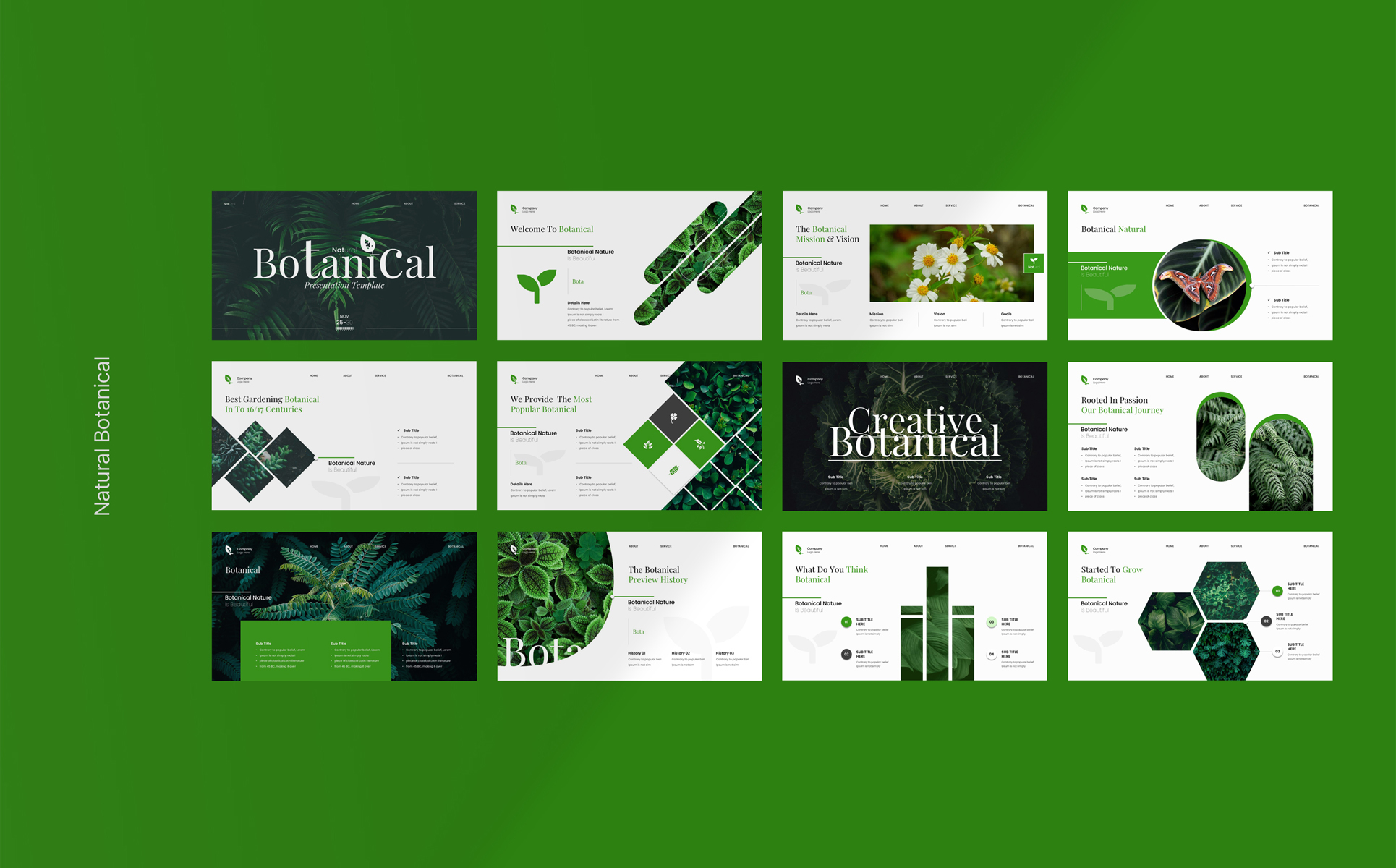 The Natural Botanical Presentation Template allows you to simply add your logo and images, edit your brand colors and typography, and you’re good to go. Don’t waste your time; we’ve done all the hard work for you.