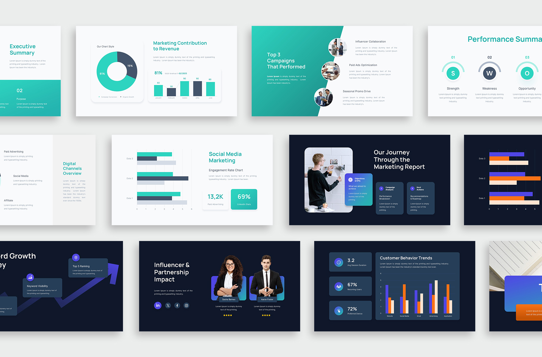 Northform is a modern marketing report presentation template designed for professionals who value clarity, structure, and style.