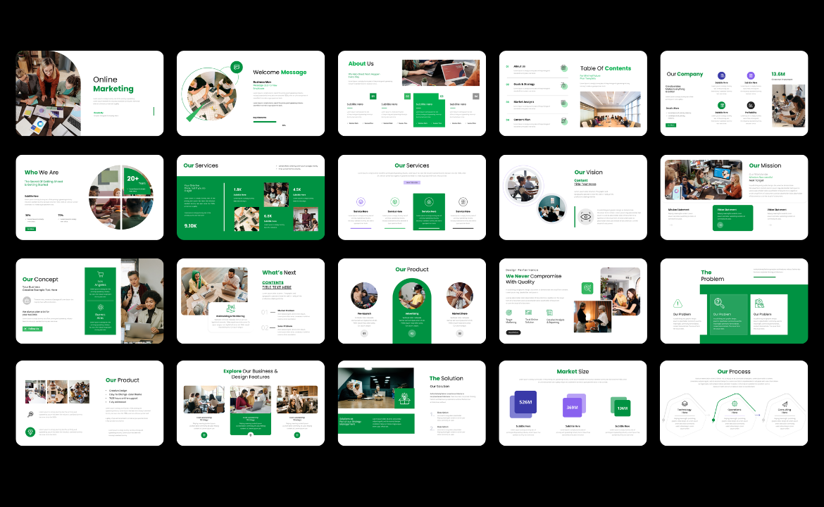 This presentation template is Ideal for agencies, freelancers, and professionals, this template offers a modern, sleek, and professional design concept, enabling you to create high-quality pitch decks in a matter of minutes. Say goodbye to the hassle of starting from scratch and focus your valuable time and attention on crafting compelling content, while the engaging visual style is ready-made for you.