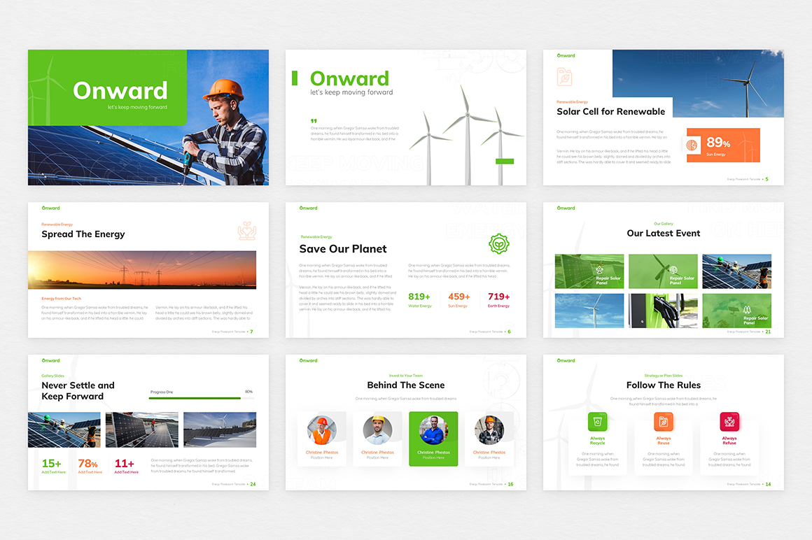 Onward Industry Creative PowerPoint Template is your solution to run any business and project successfully. It has an green layout to bring a super cool and creative look. To avoid boredom, you can add some pictures and catchy fonts since all the elements are very editable. With design element trends, you can enhance your brand’s visuals and experience to mesmerize the audience’s eyes.