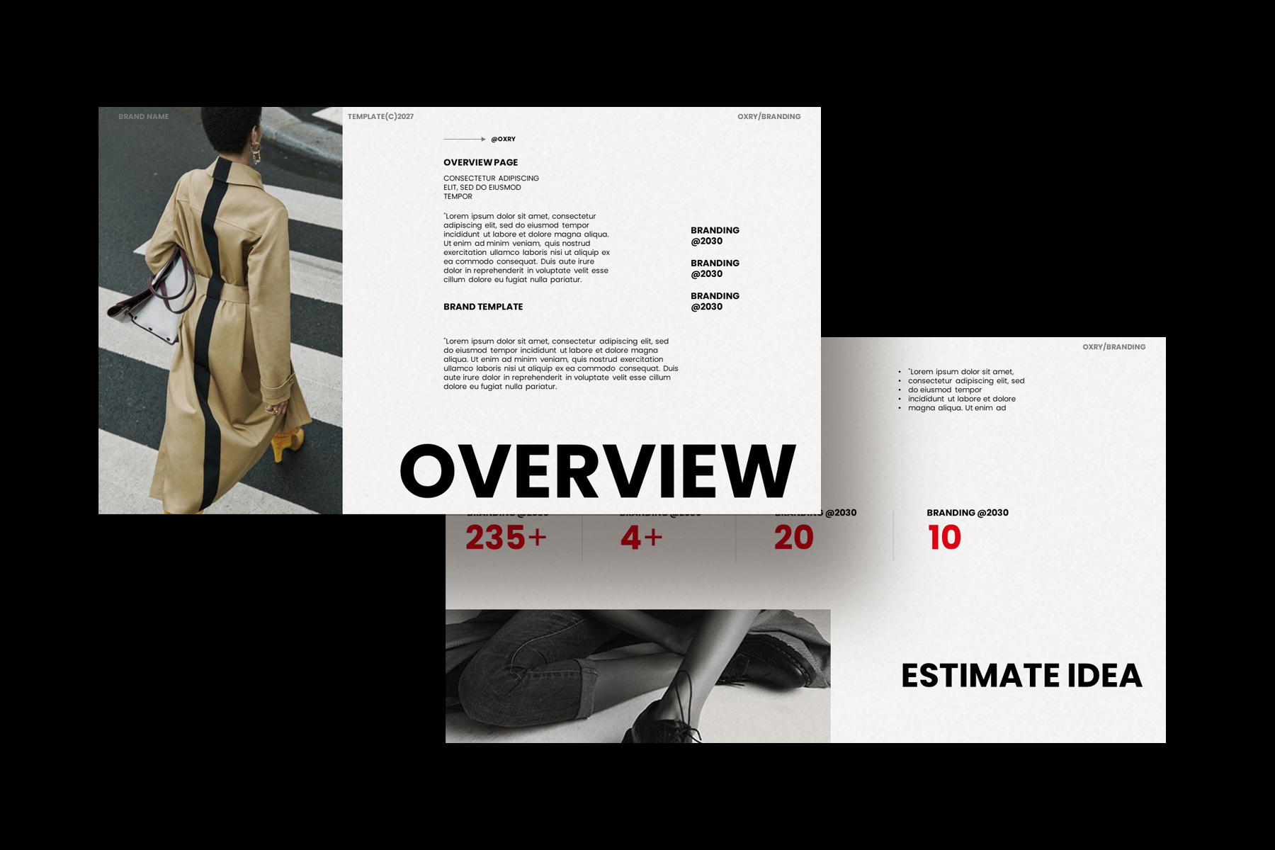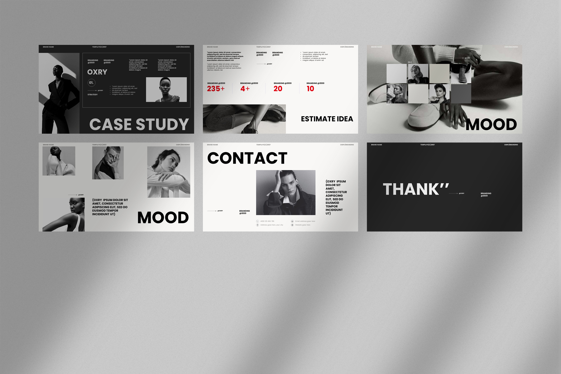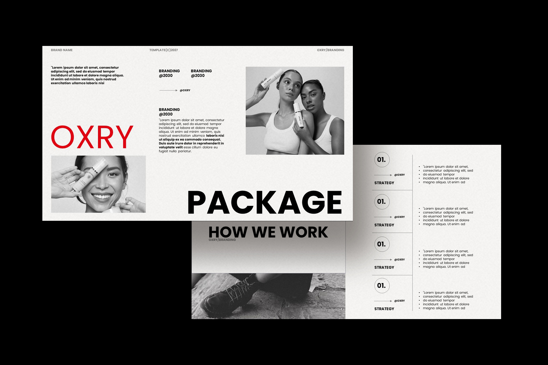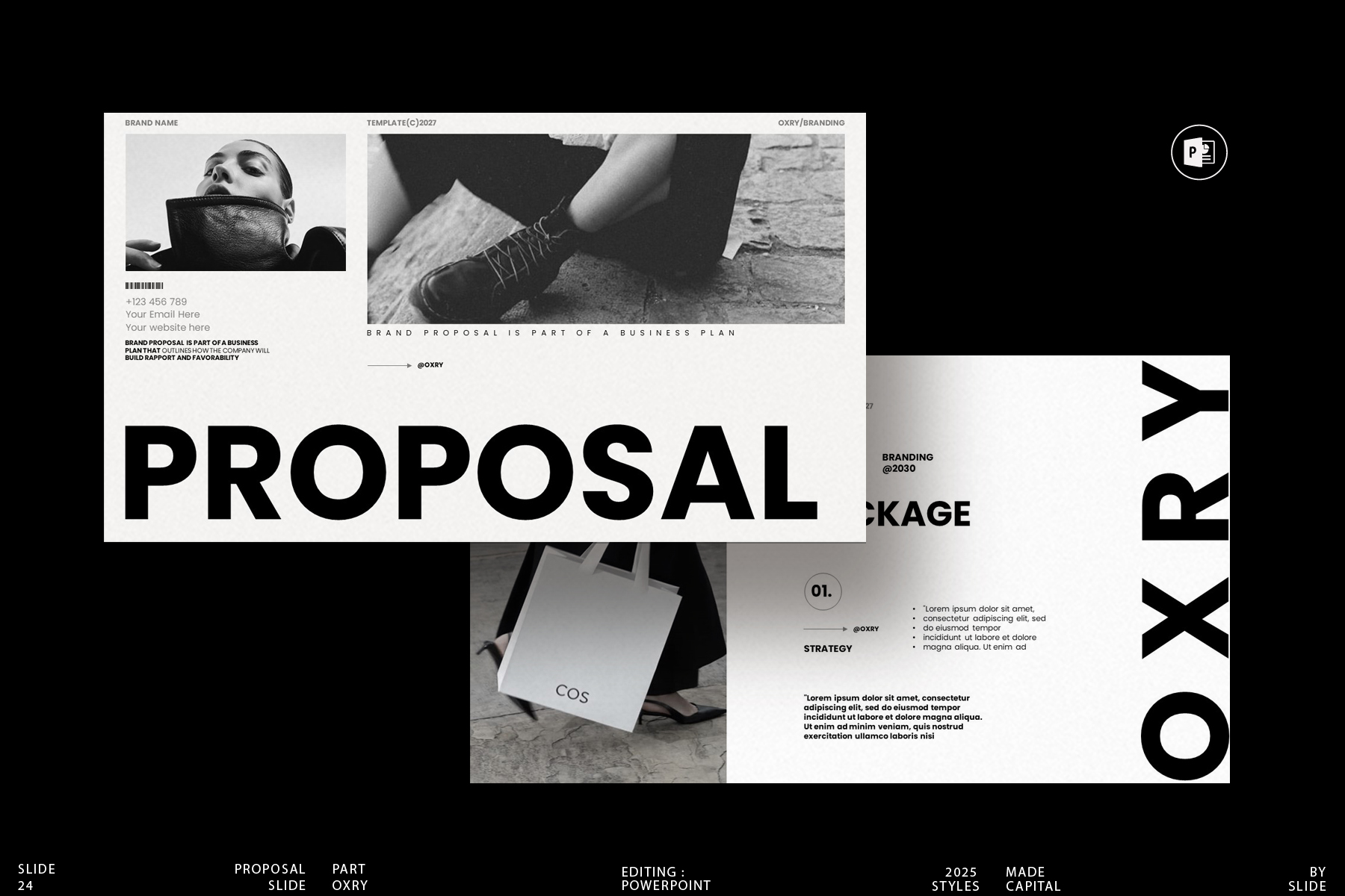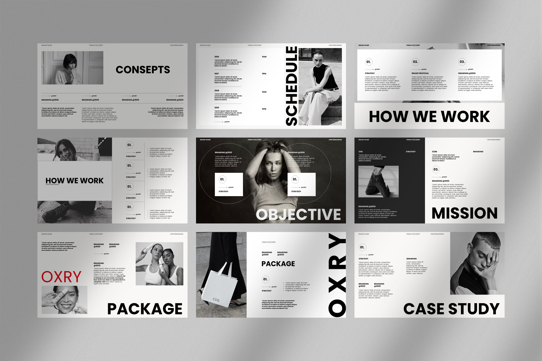 Oxry - Brand Proposal - Presentation Style Template for you that you need unique, professional, clean, creative, simple presentation template. All slides designed using great style. All element easy to edit and you can easily change the color to match it with your personal or company brand.