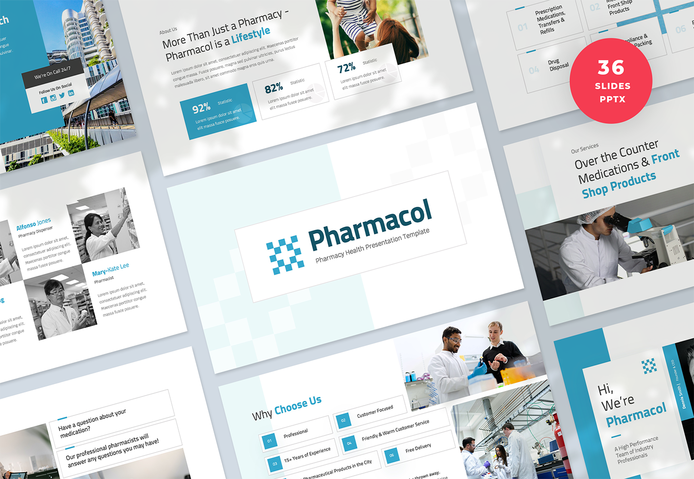 The Pharmacol Presentation Template is perfect for companies and individuals working in the Pharmacy, Medical, and Healthcare industry. Whether you are pitching to an important new client or making a business portfolio, this PowerPoint template will allow you to turn your information and data into a presentation quickly and efficiently.