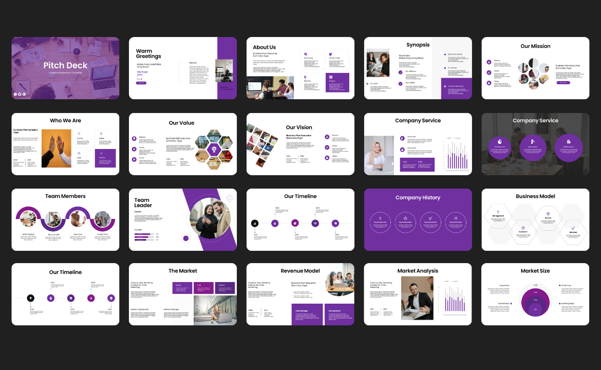 This presentation template is Ideal for agencies, freelancers, and professionals, this template offers a modern, sleek, and professional design concept, enabling you to create high-quality pitch decks in a matter of minutes. Say goodbye to the hassle of starting from scratch and focus your valuable time and attention on crafting compelling content, while the engaging visual style is ready-made for you.