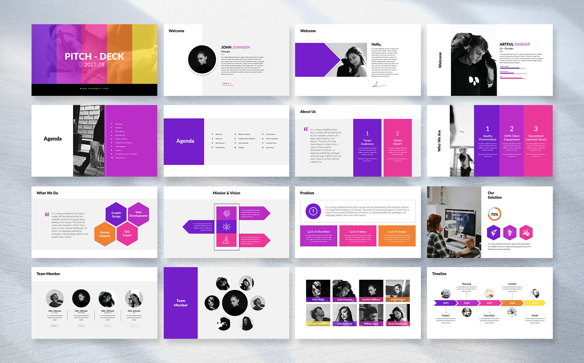Pitch Deck Presentation is a comprehensive business document that outlines the advertising and marketing efforts for the coming year. It describes business activities involved in accomplishing specific marketing objectives within a set time frame. All Elements r'e 100% Editable. You can use this presentation any kinds of digital marketing content.