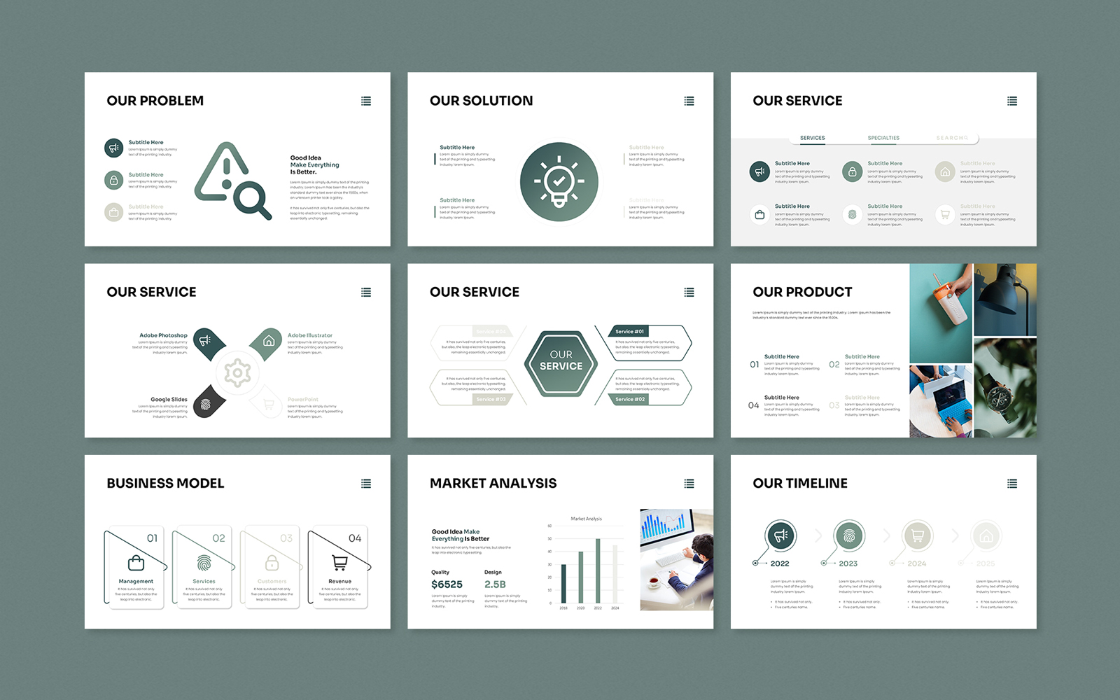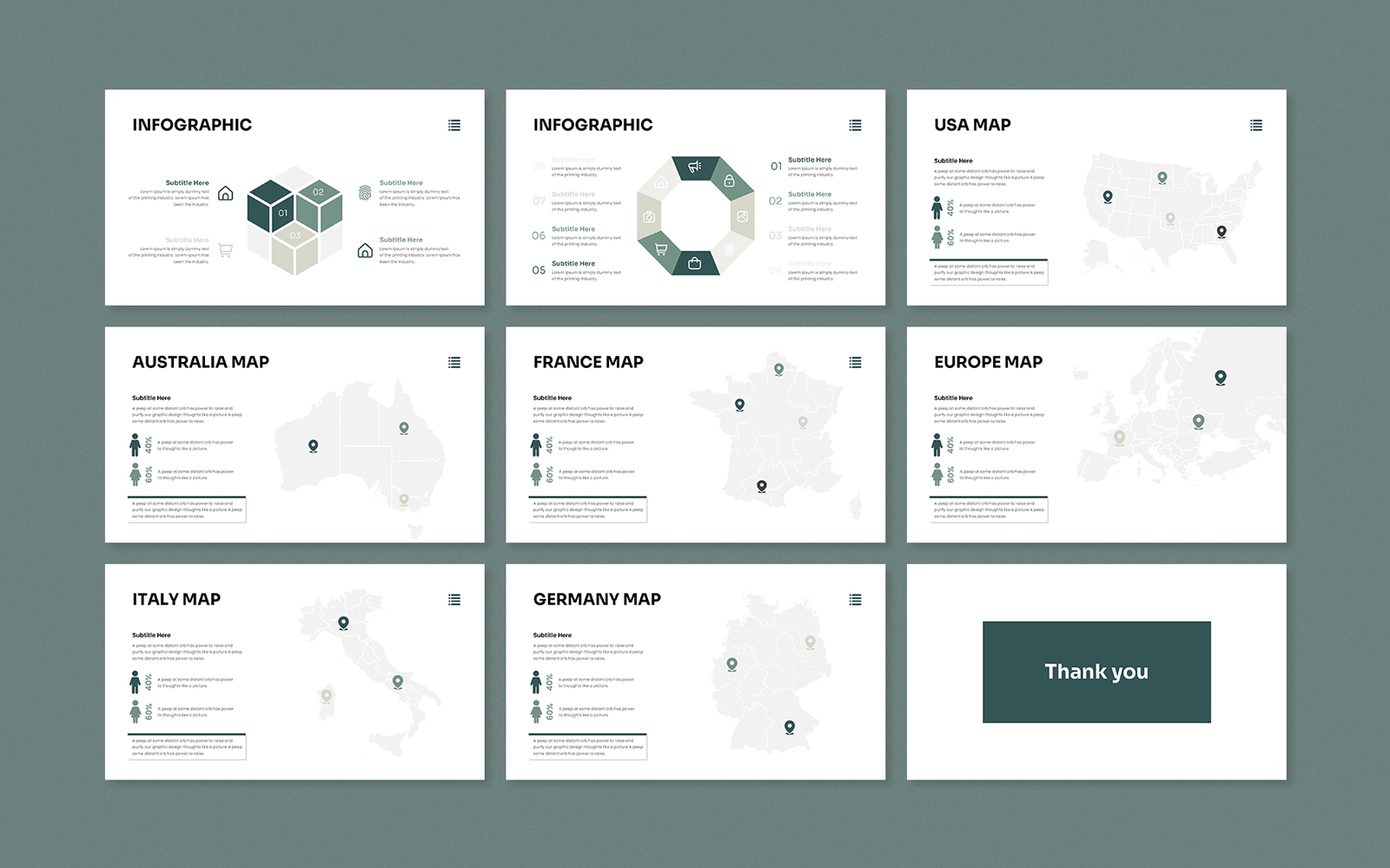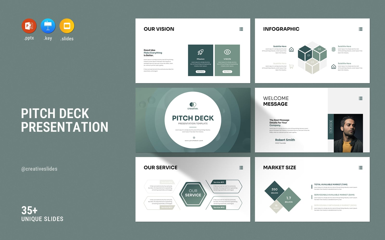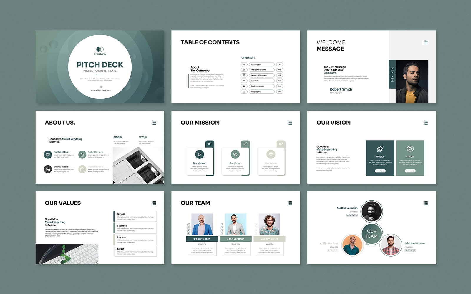 Present your works in a professional and clean way with annual pitch deck presentation template. This is a simple, contemporary but powerful design that includes creative photo layouts, infographics, tables, vector icons, diagrams and tons of great features to show your work and your company profile on another level.