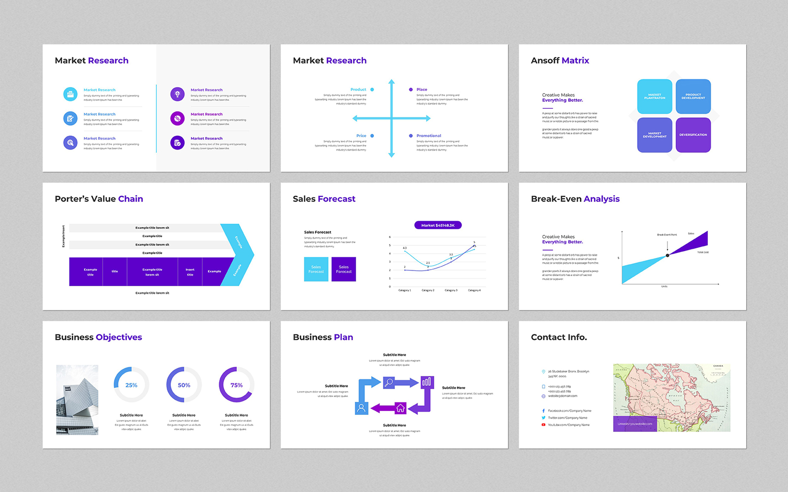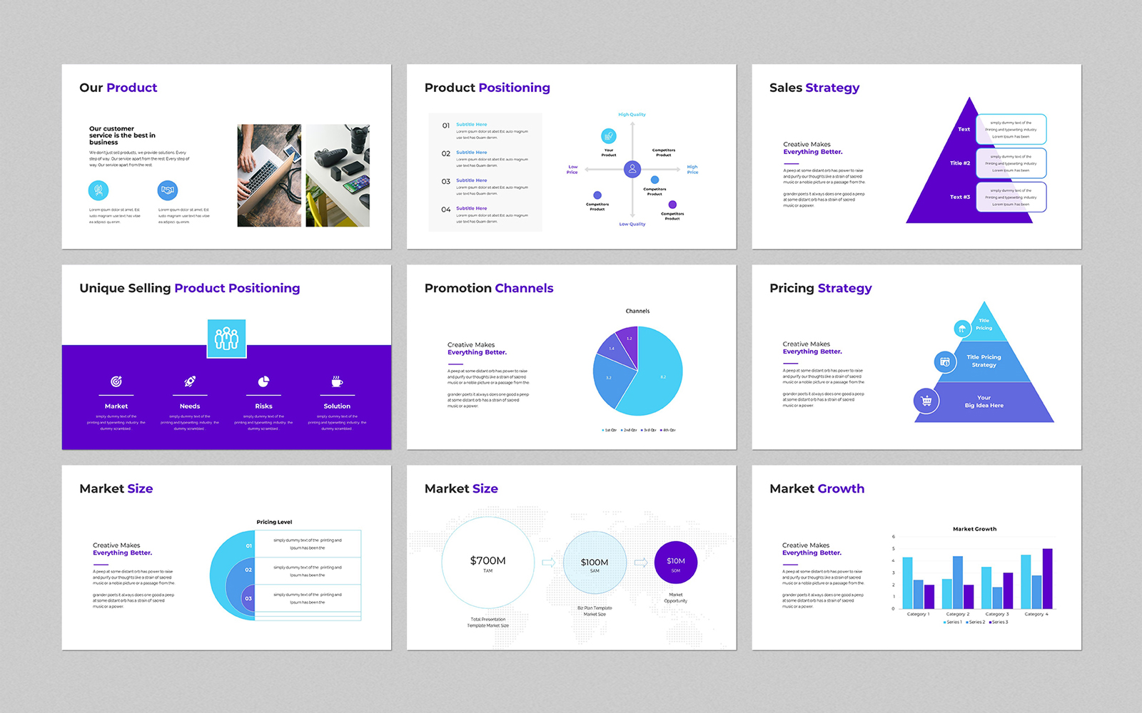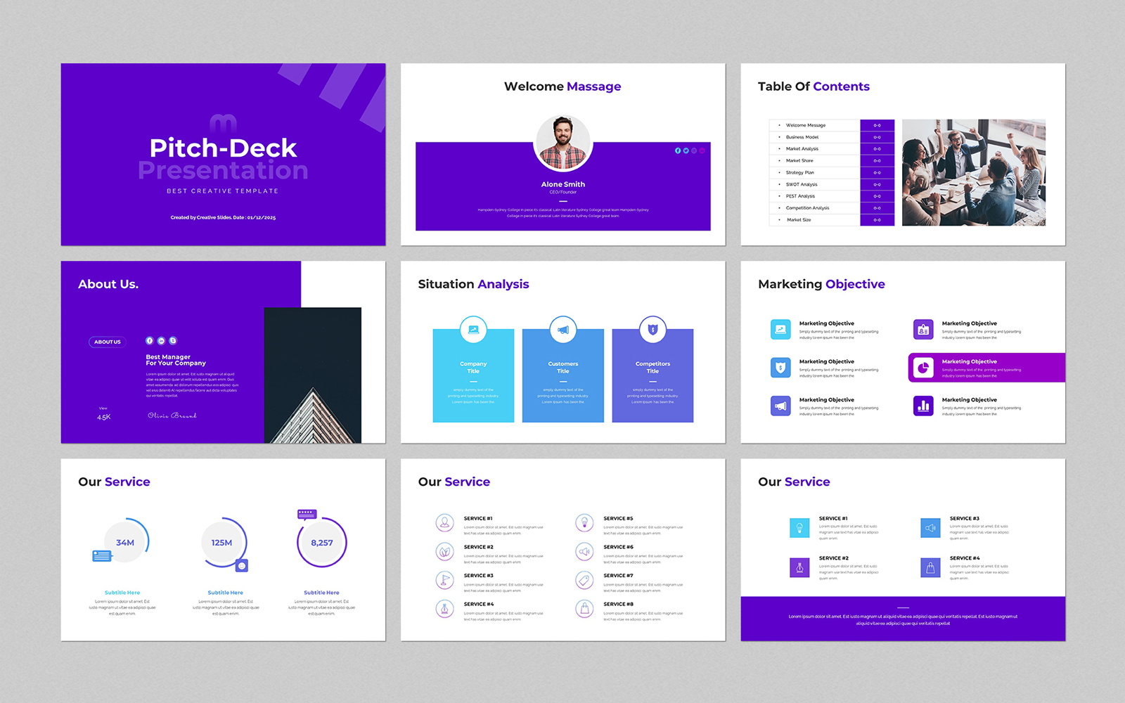 Present your works in a professional and clean way with pitch deck presentation template. This is a simple, contemporary but powerful design that includes creative photo layouts, infographics, tables, vector icons, diagrams and tons of great features to show your work and your company profile on another level.