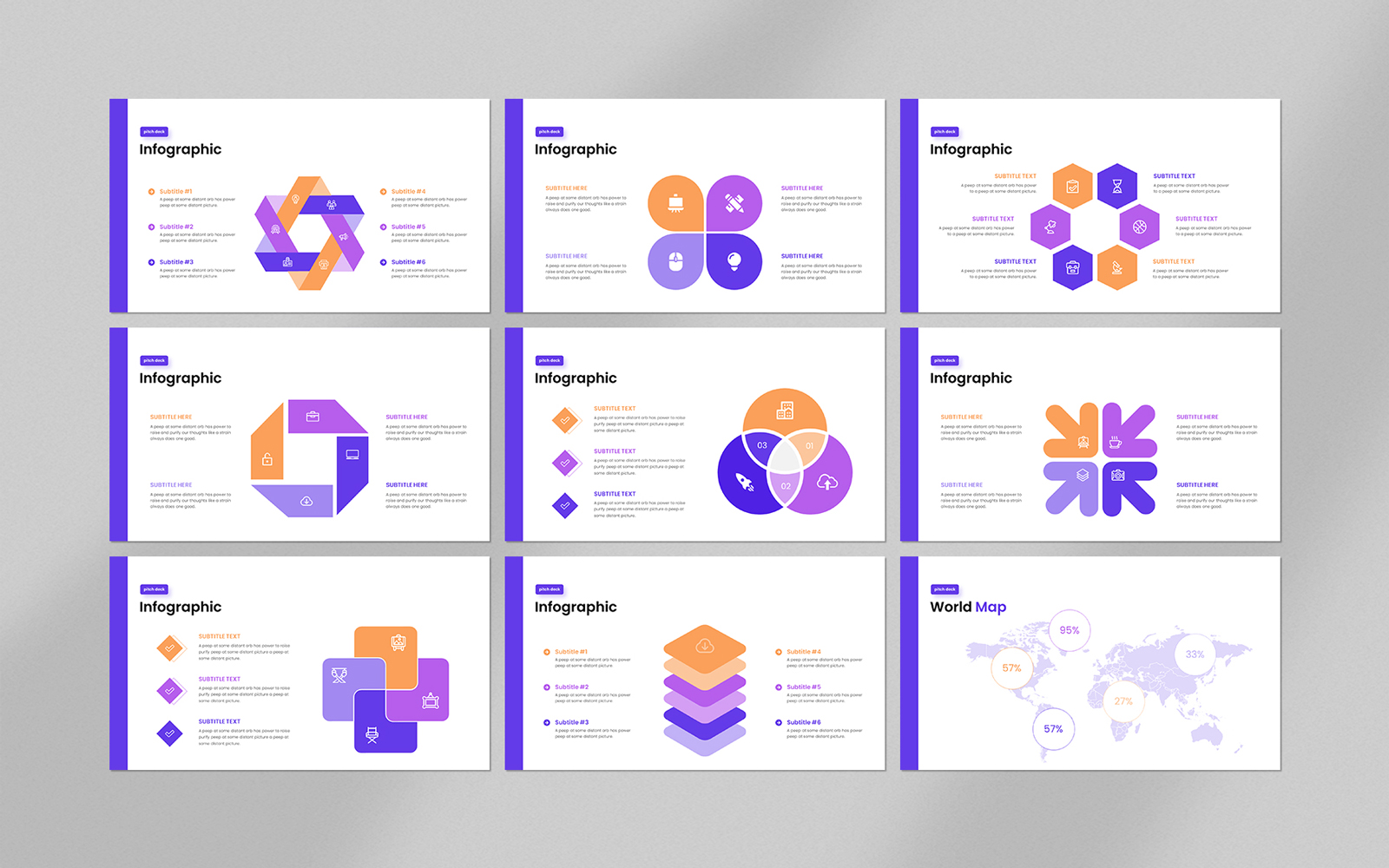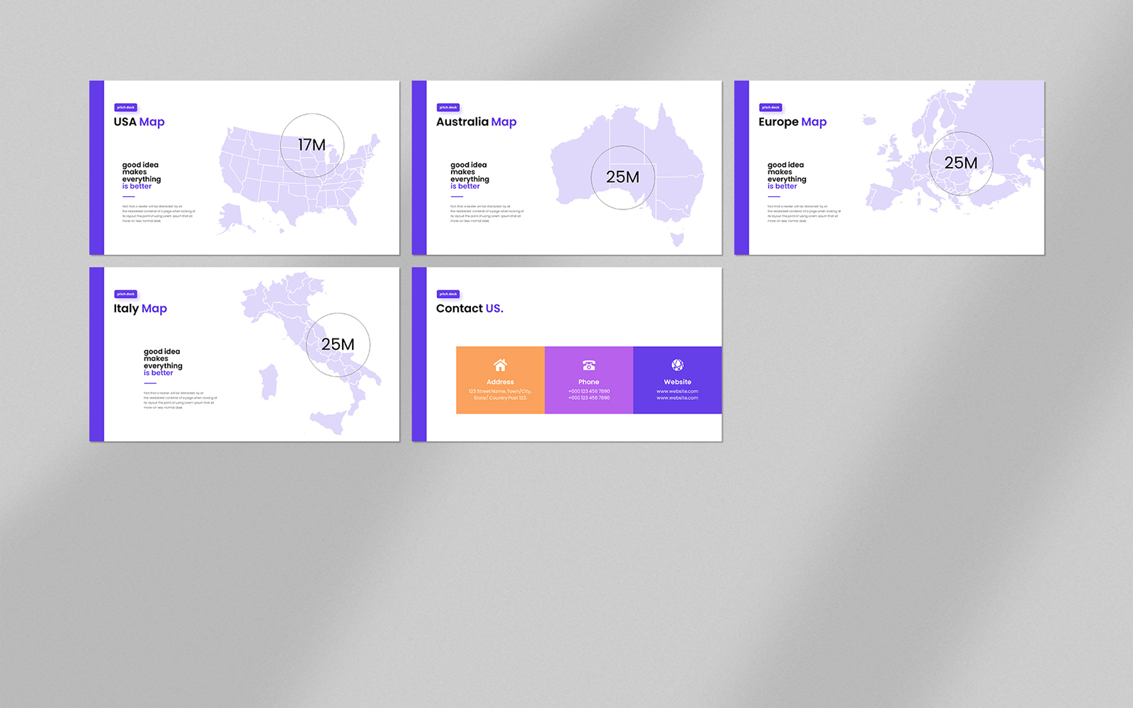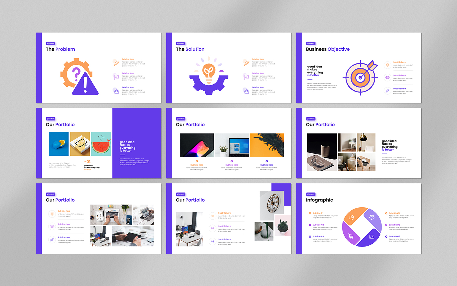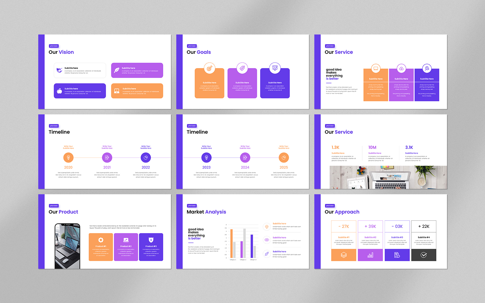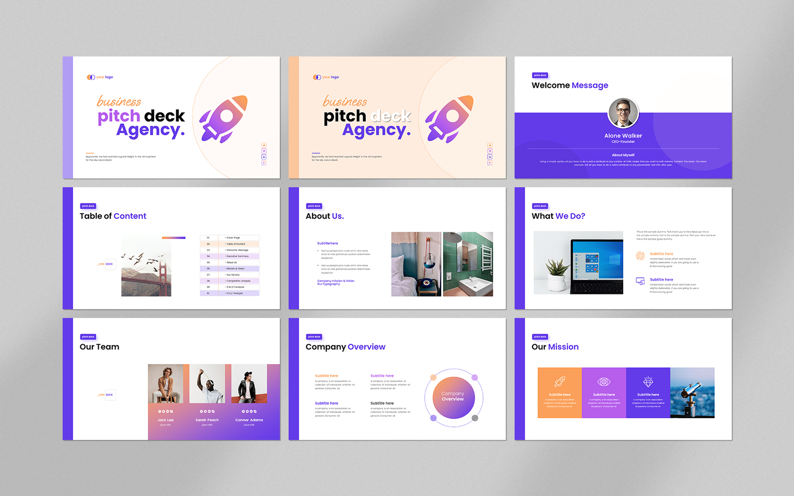 Present your works in a professional and clean way with pitch deck presentation template. This is a simple, contemporary but powerful design that includes creative photo layouts, infographics, tables, vector icons, diagrams and tons of great features to show your work and your company profile on another level.