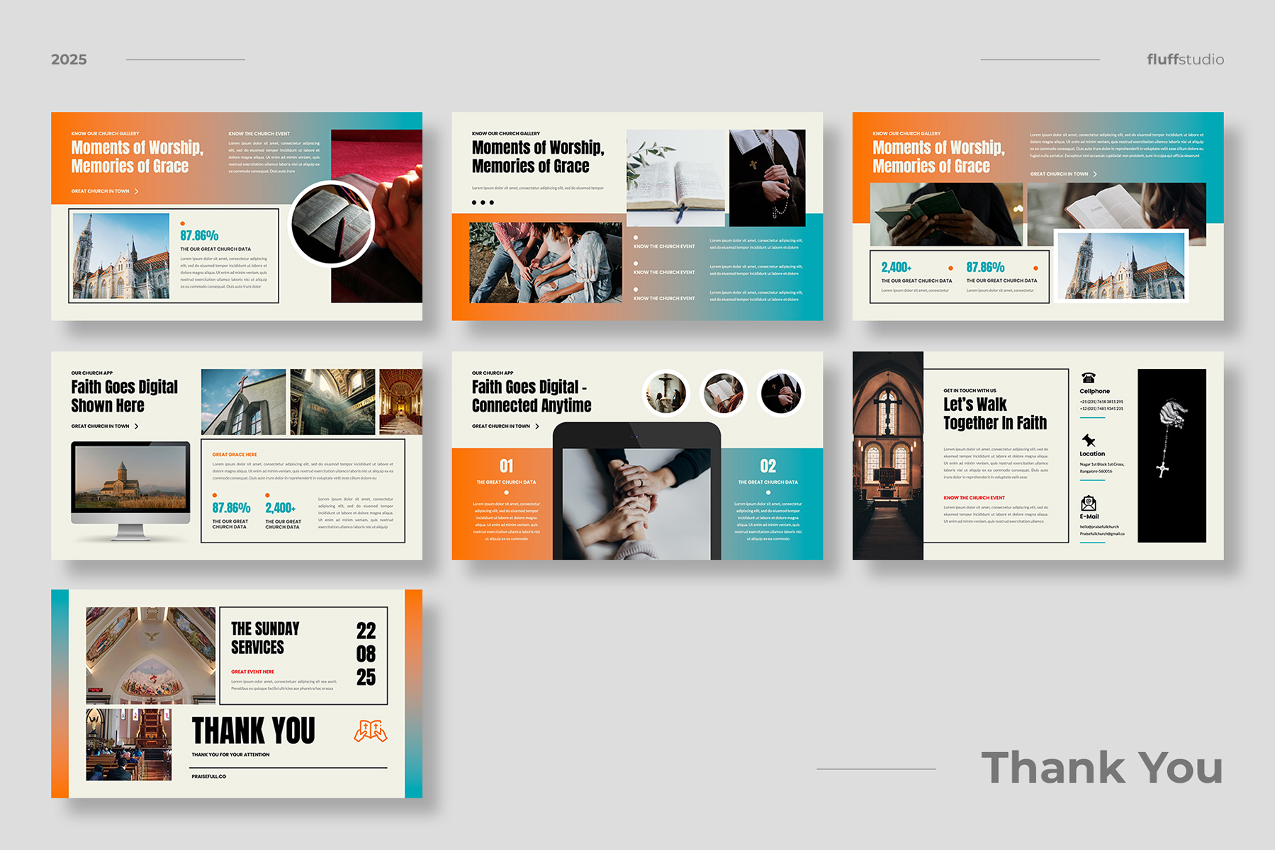 Perfect for any kind of religious organization & community, church, religious education, religious activity & event, project proposal, startup pitch deck, portfolio, company profile, marketing kit, etc.