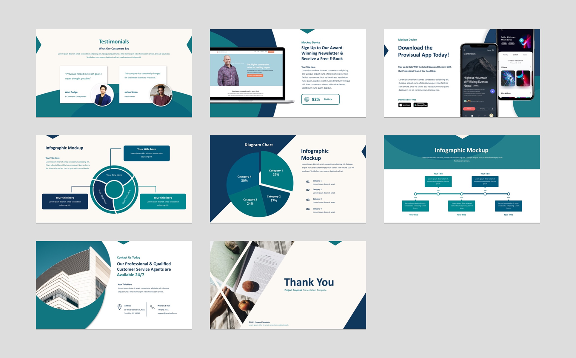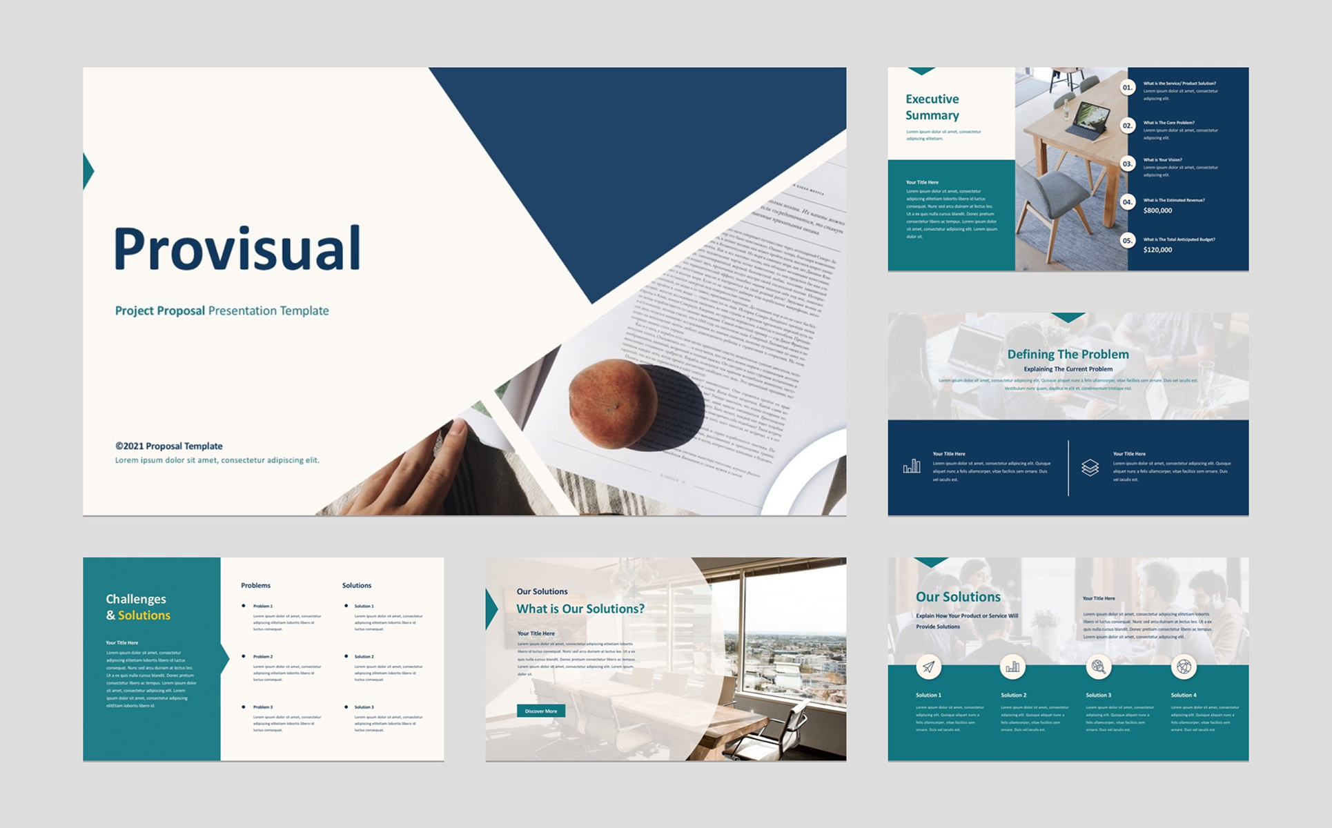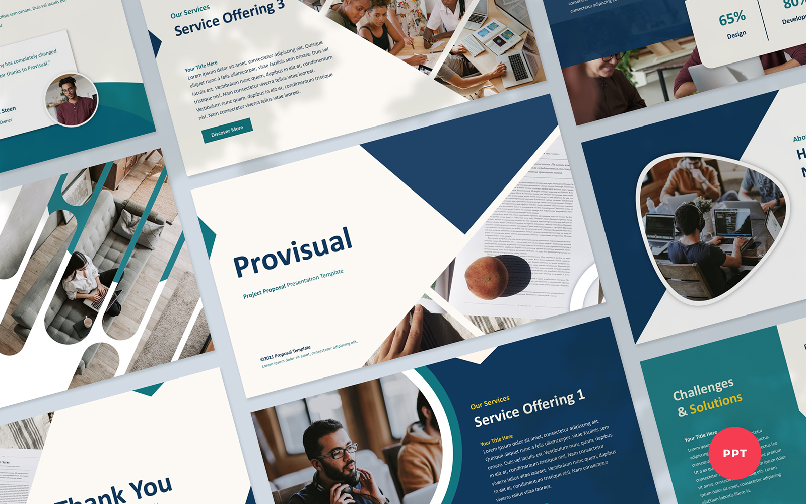 The Provisual Presentation Template is perfect for showcasing your project proposal ideas, explaining your project objectives and goals, as well as discussing key risks, timeframe, and ownership. Whether you are pitching to an important new client or making a business portfolio, this PowerPoint template will allow you to turn your information and data into a presentation quickly and efficiently.