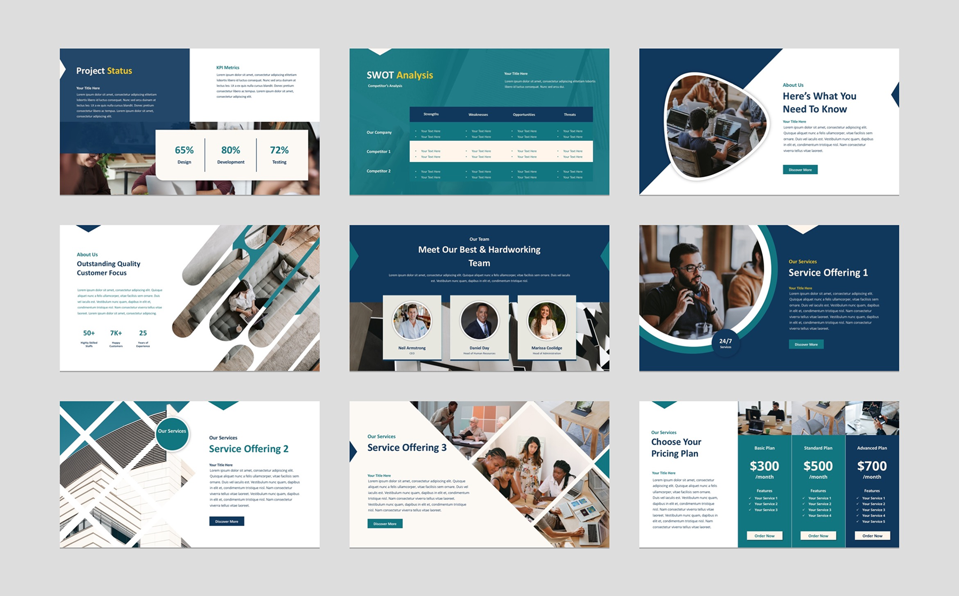 If you are looking to create a modern and clean presentation to wow your audience, then look no further. The Provisual Presentation Template for Microsoft PowerPoint contains 32 sleek looking slides that can be easily edited to suit your any professional and business need.
