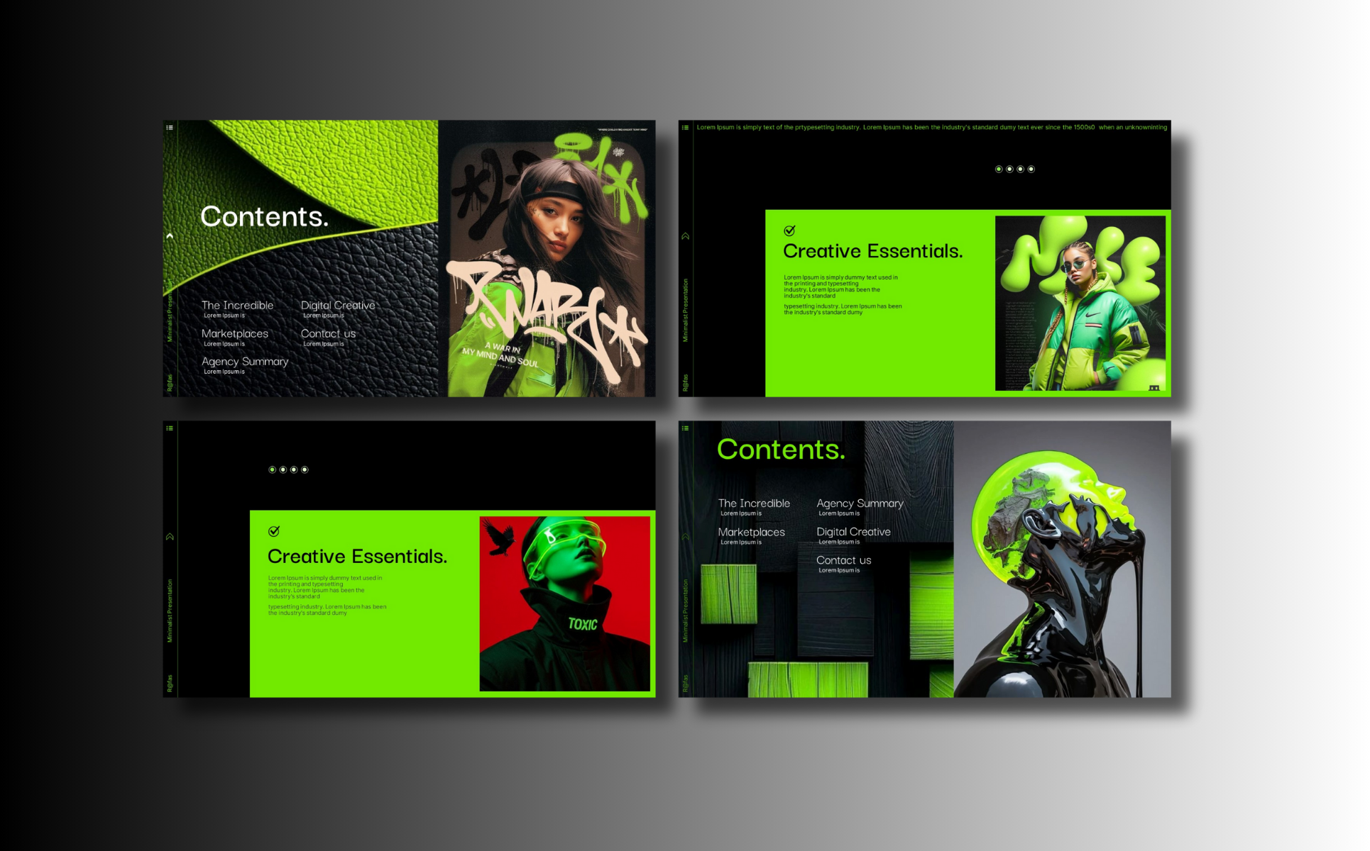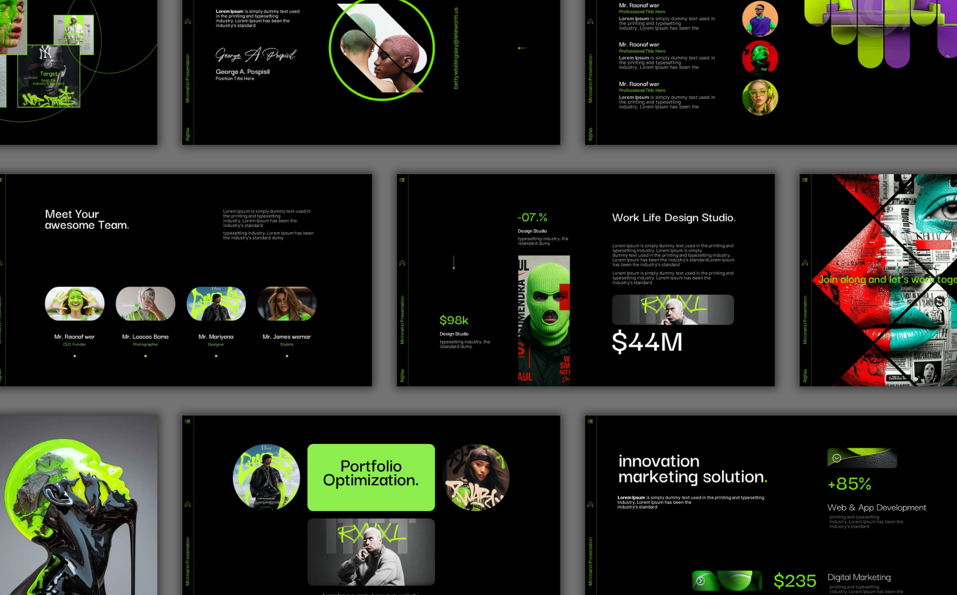 A minimalist presentation template, the R@fas Presentation Template is ideal for project pitches, business presentations, lookbook slides, and many other uses.Every component in our templates is movable, editable, and changeable.