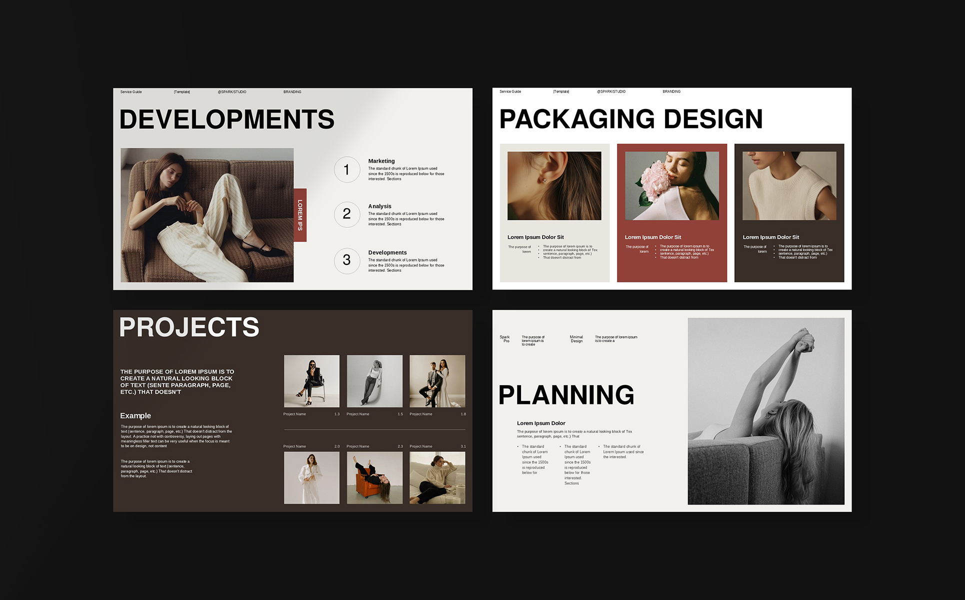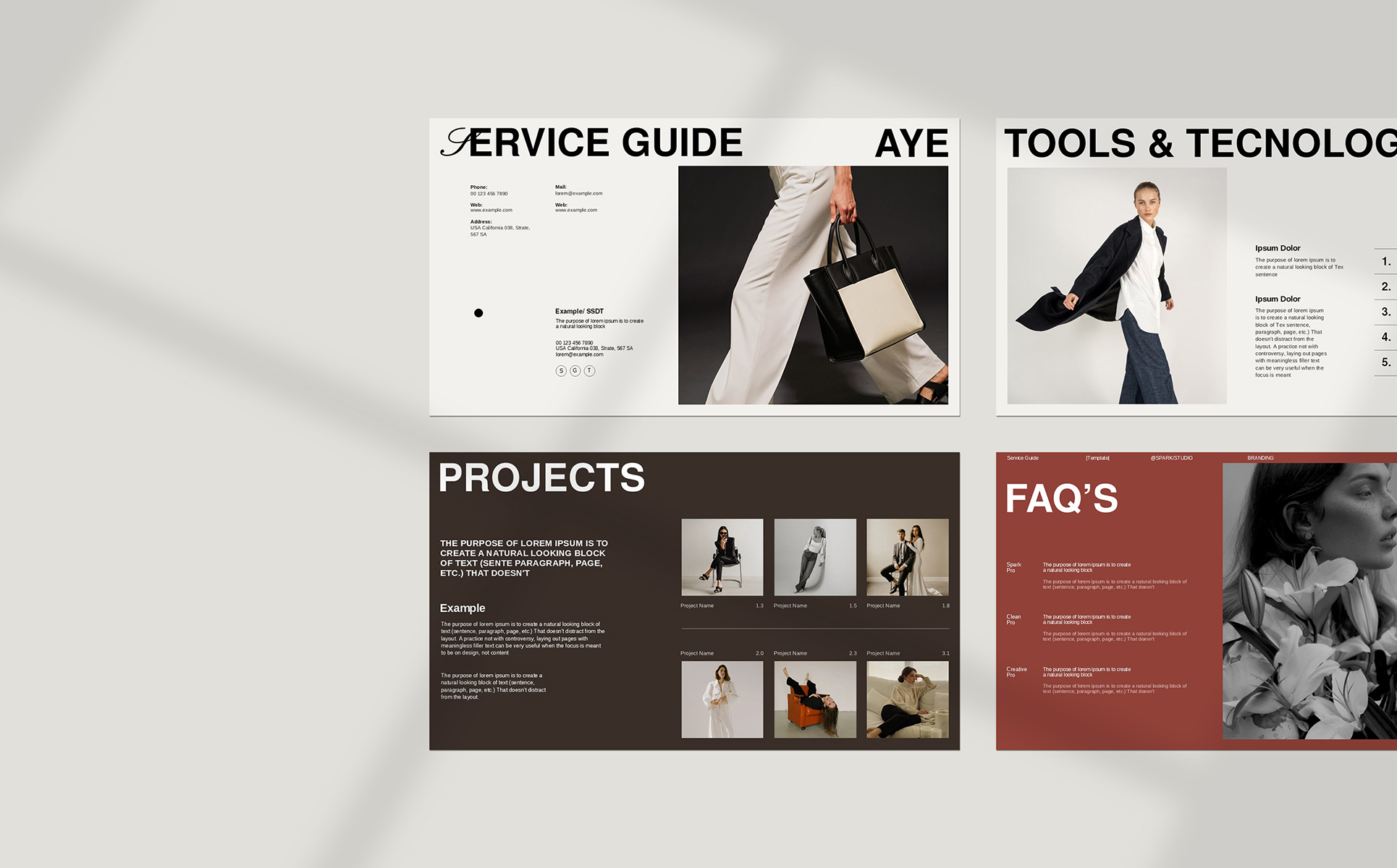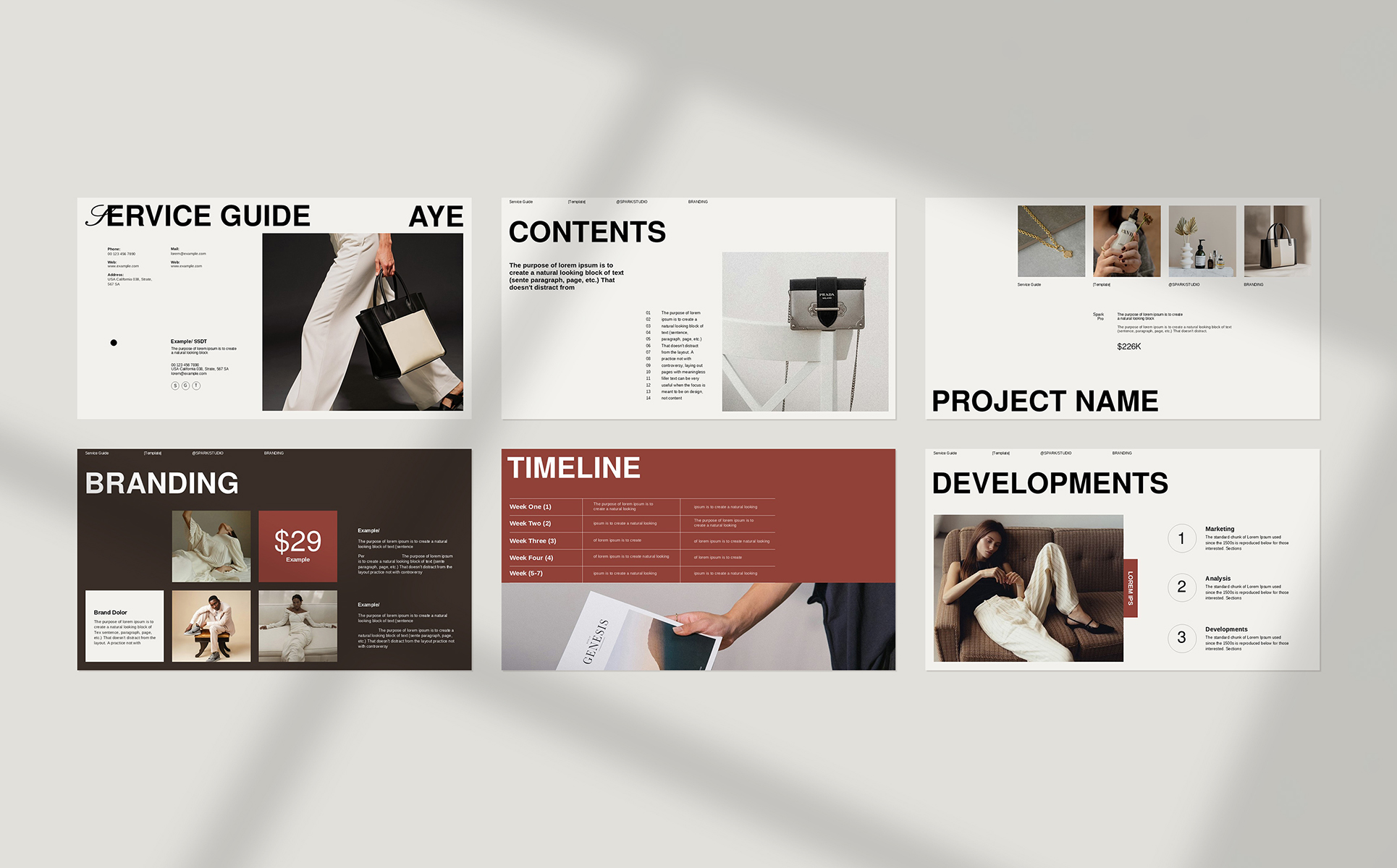 Service Guide Presentation Template allows you to simply add your logo, images and edit your brand colors and typography and you’re good to go. Don’t waste your time, we’ve done all the hard work for you.