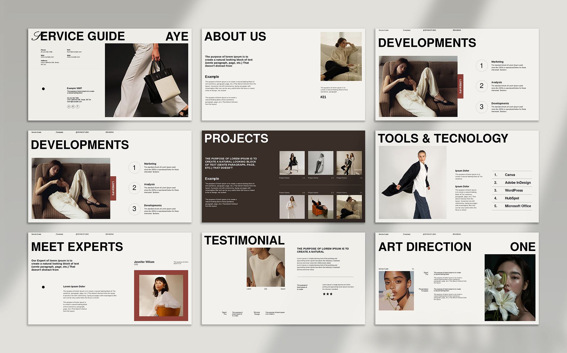 Service Guide Presentation Template is a classic, timeless, clean design, inspired by one of my favorite brands: Aesop.