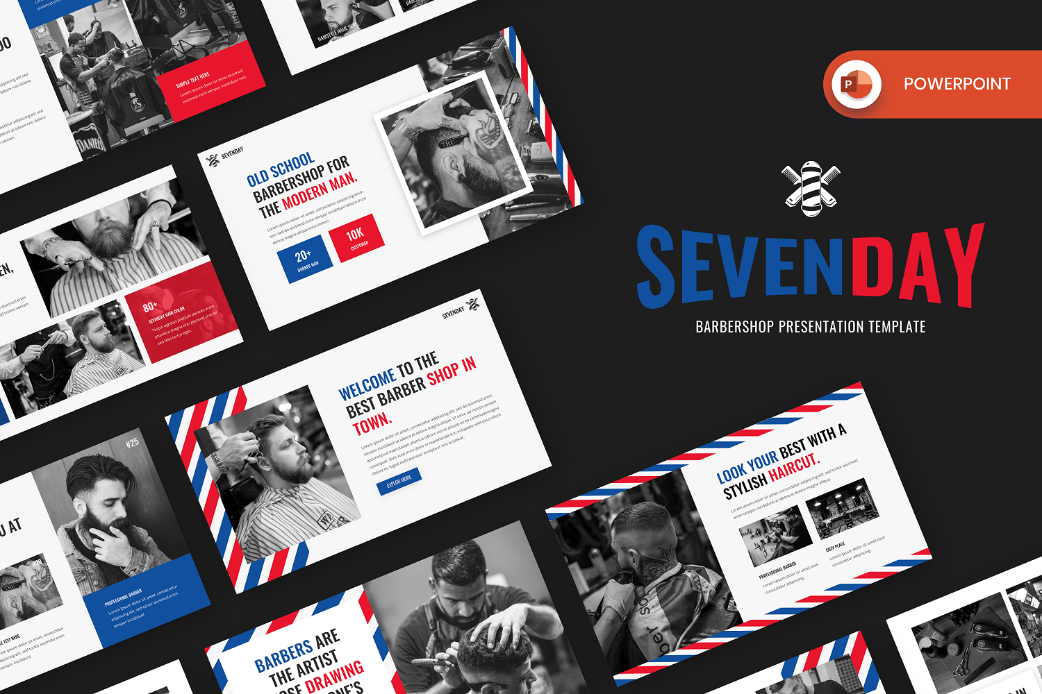 Introducing **Sevenday - Barbershop PowerPoint Template**
