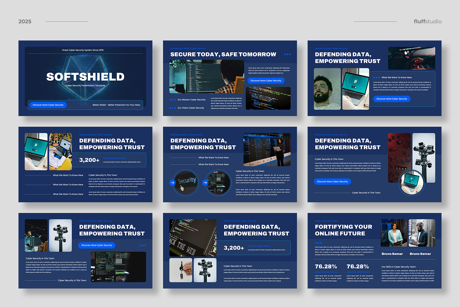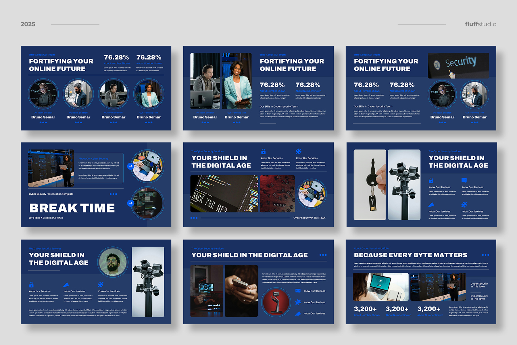 Perfect for cyber security presentation, internet security, digital technology company, antivirus developer, information security system, VPN, network safety, tech consultant, project proposal, startup pitch deck, portfolio, company profile, marketing kit, etc.