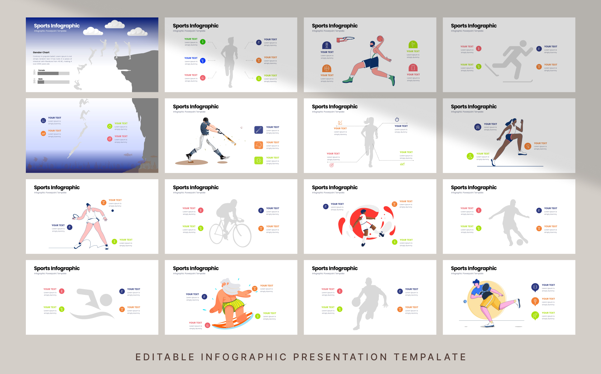 Sport Slide - Infographic Presentation Template is an asset to help you make the business illustration in the media presentation easier. With a variety of modern design choices, making your presentation structure easier to understand and stylist.