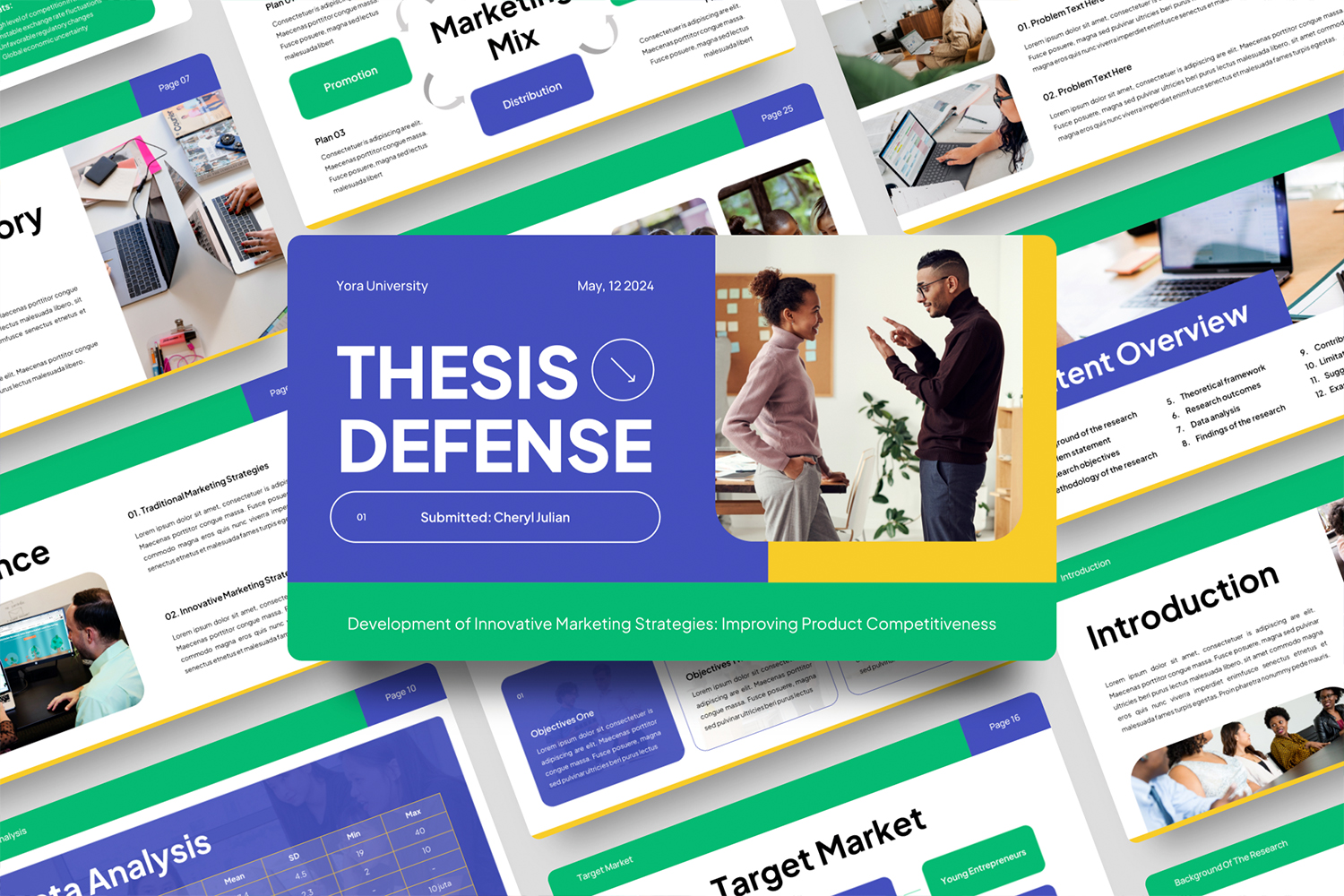Thesis Defense Marketing Strategy PowerPoint Template combines modern design with professional layouts for a truly captivating presentation. Showcase your designs with ease using its elegant, creative and unique features. Impress your audience with stunning visuals and dynamic.