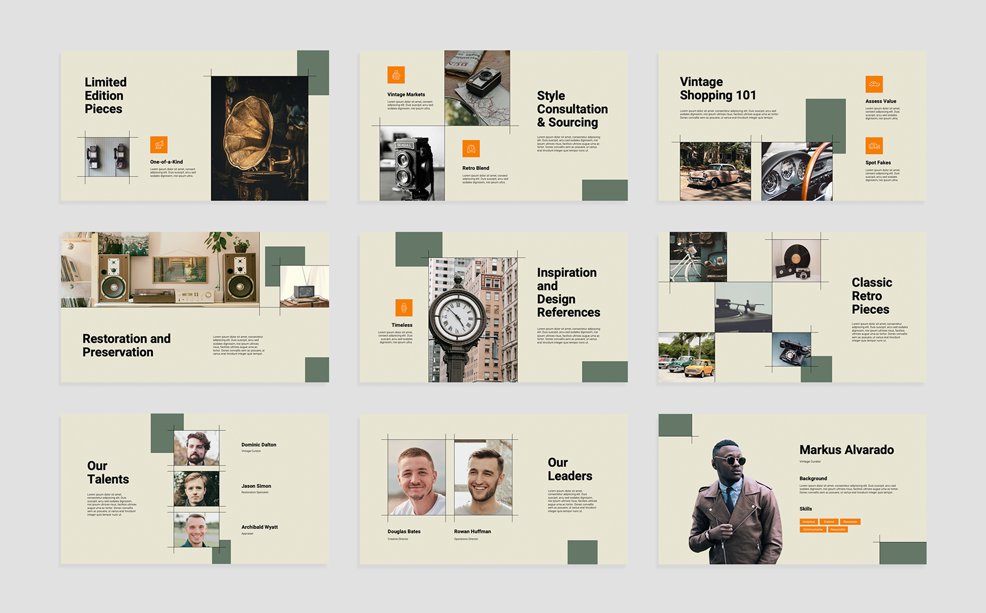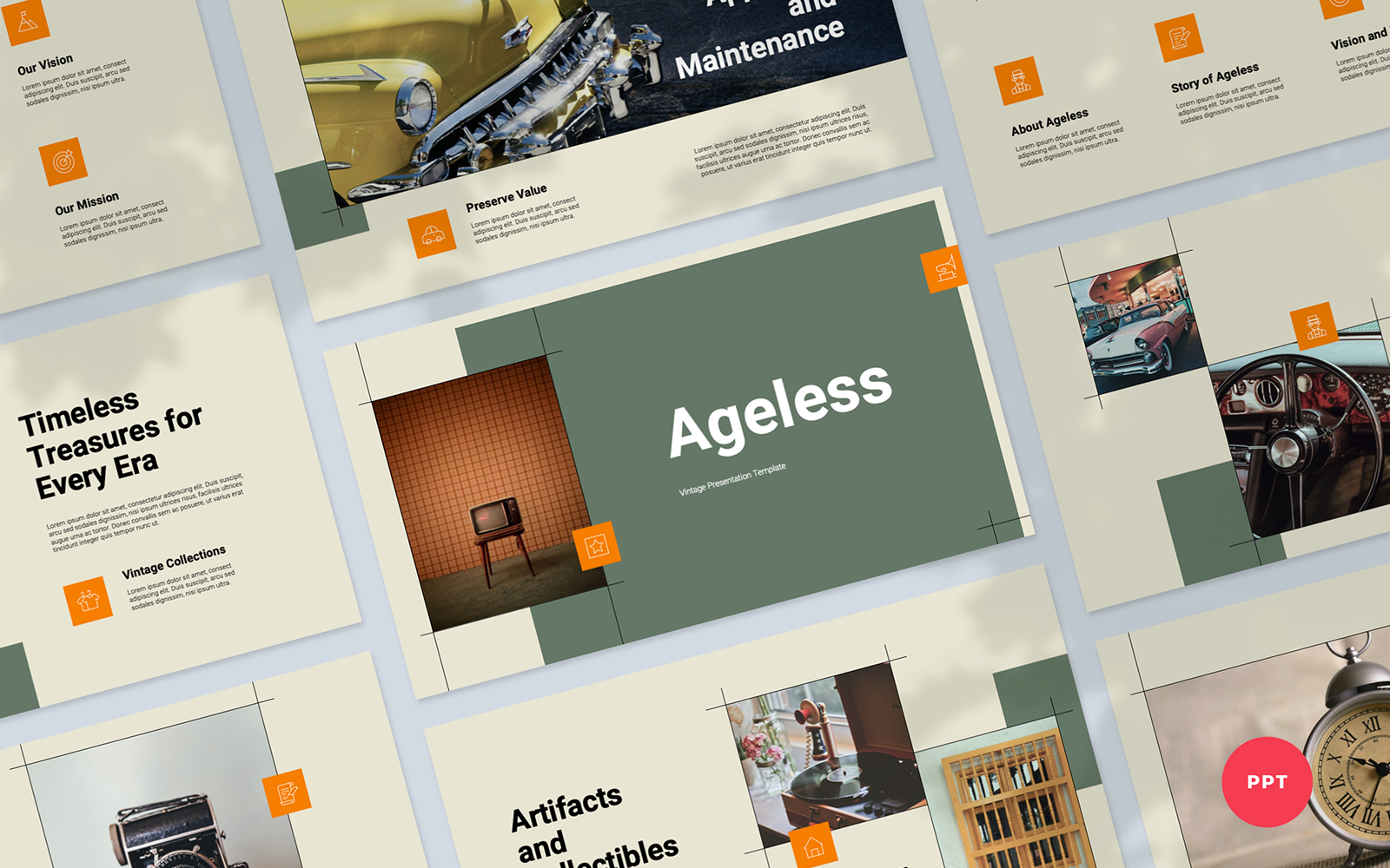 When creating the Ageless Presentation Template, our primary focus was on vintage collectors, antique dealers, retro enthusiasts, fashion designers, and event planners. Whether you’re making a bid to an important new client or a business portfolio, this PowerPoint template will allow you to turn your information and data into a presentation quickly and efficiently.