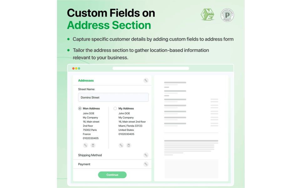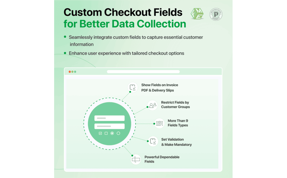 Enhance your store's checkout process by collecting additional customer information with the PrestaShop Custom Checkout Fields module. Easily add custom fields to any step of the checkout process, including cart, personal information, address, shipping, and payment sections.