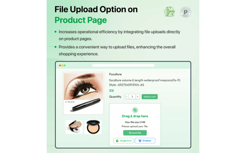 - Let customers upload files on the product, cart page, or during the checkout process.