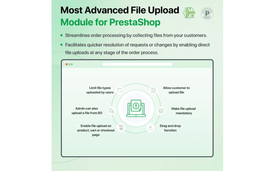 PrestaShop Upload File by FME Modules enables your PrestaShop store to accept customer-uploaded files on product, cart, checkout, and order pages.