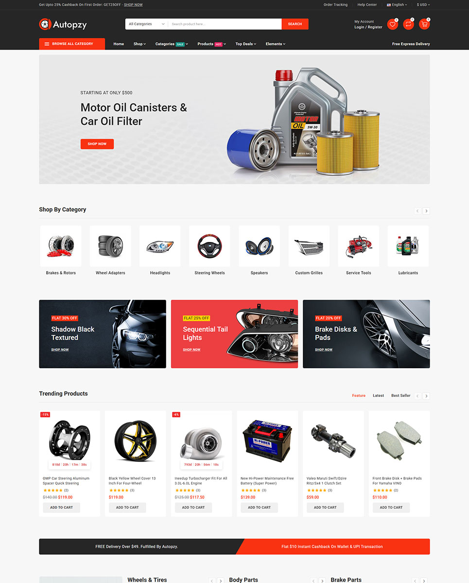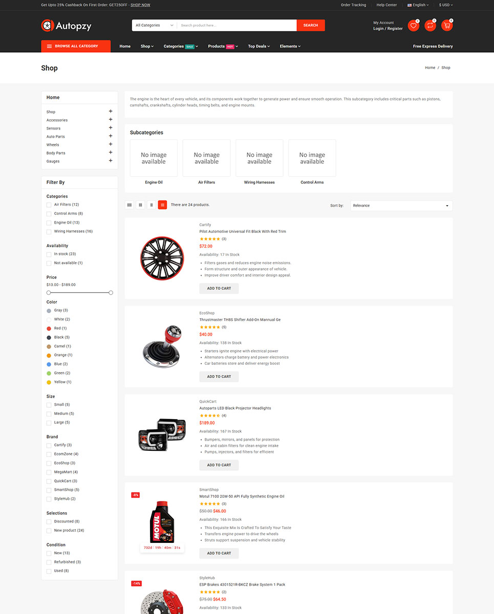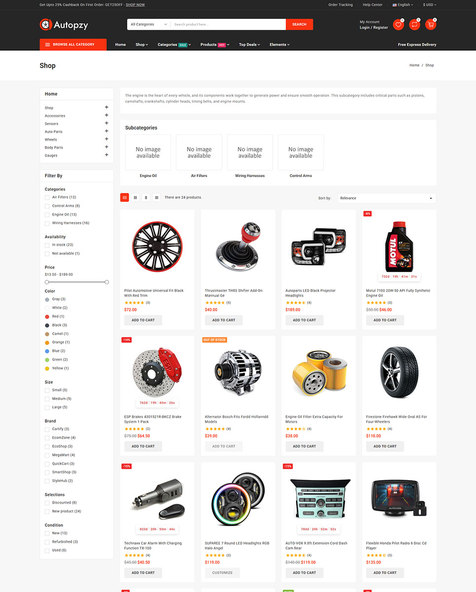 Autopzy is a powerful and professional PrestaShop responsive theme specially built for auto parts dealers, vehicle accessory shops, garage equipment stores, and automotive marketplaces. With its bold layout, clean structure, and high-performance design, Autopzy makes it easy to showcase a wide range of automobile parts and tools in an organized and visually appealing manner.