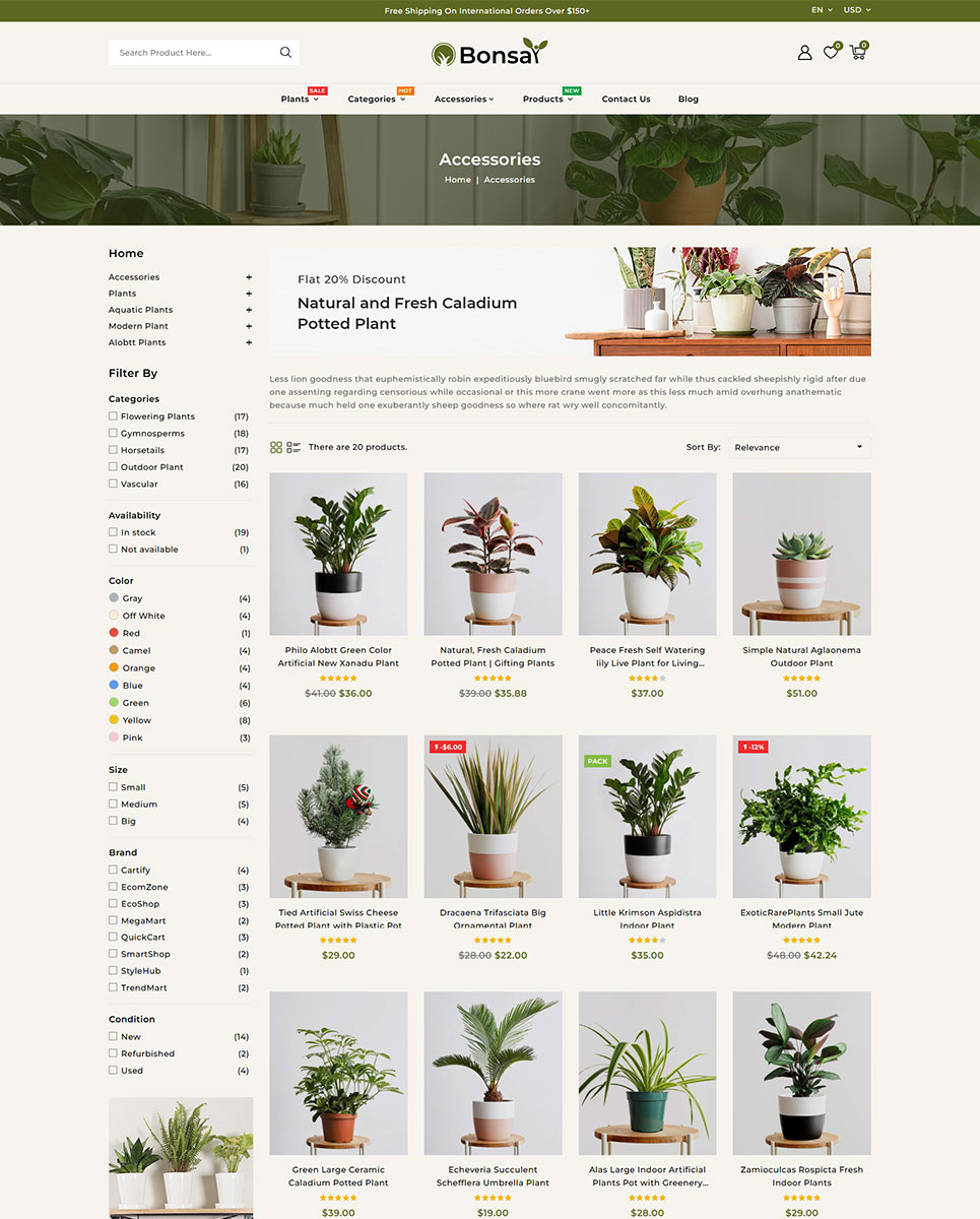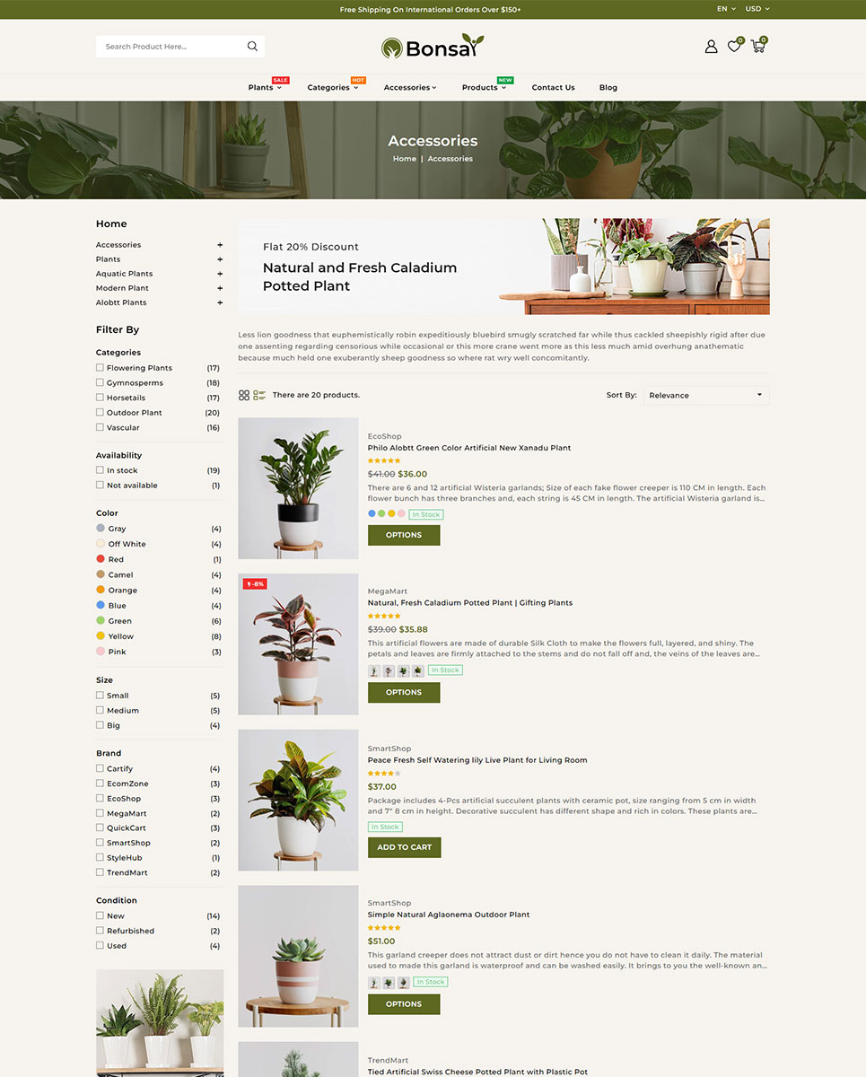 Bring the beauty of nature to your online store with Bonsai, a stunning PrestaShop responsive theme designed exclusively for houseplants, nurseries, gardening supplies, florists, and eco-friendly stores. Whether you sell succulents, bonsai trees, floral arrangements, or garden tools, this theme provides a visually captivating and user-friendly shopping experience that will attract nature enthusiasts and plant lovers alike.
