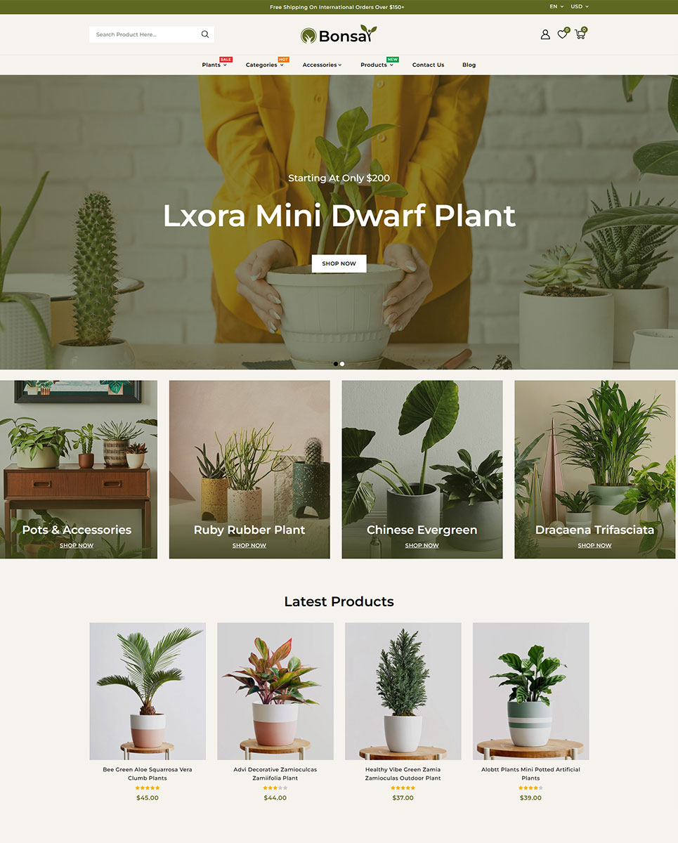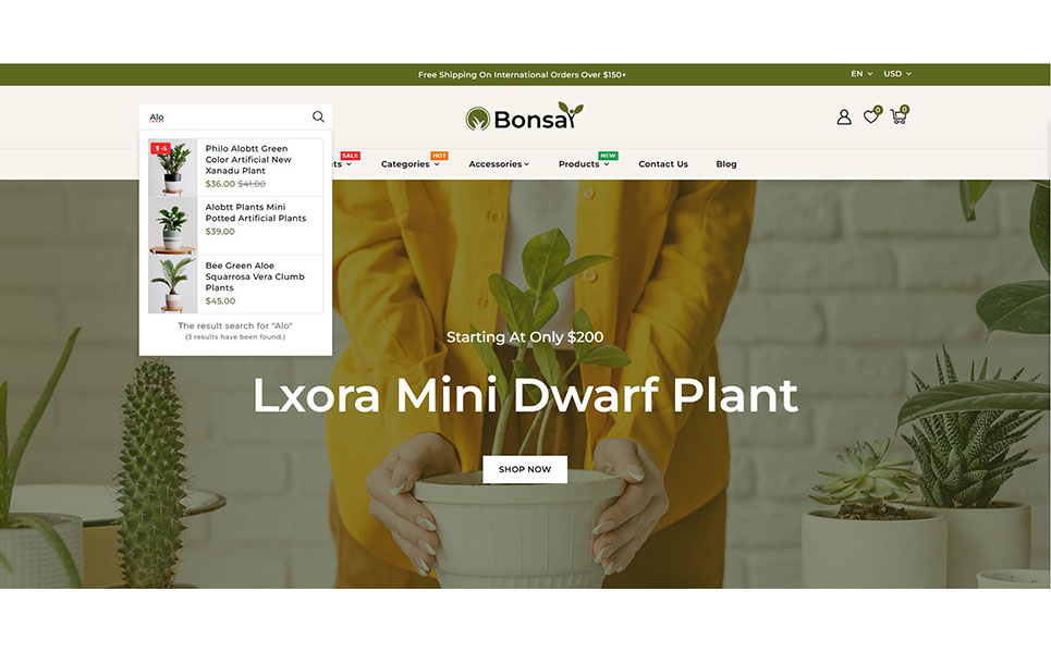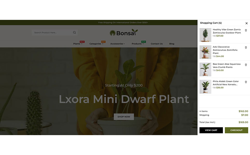 Bonsai features a modern, clean, and elegant design, inspired by the lush greenery of indoor and outdoor gardens. With its fresh color palette, smooth navigation, and intuitive layout, this theme creates a serene shopping atmosphere that encourages customers to explore and purchase effortlessly.
