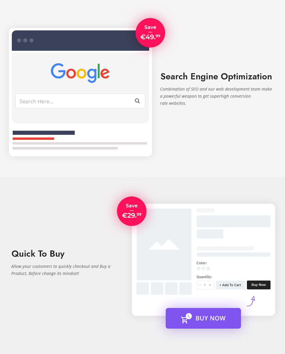 – extensive SEO optimization to make your store ranked higher in search engines with Extended On-Page SEO Optimization (delivery time – extra 20 business days to perform all the optimizations and see the first results)