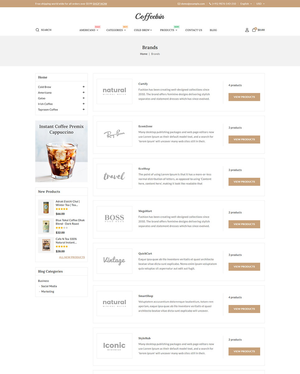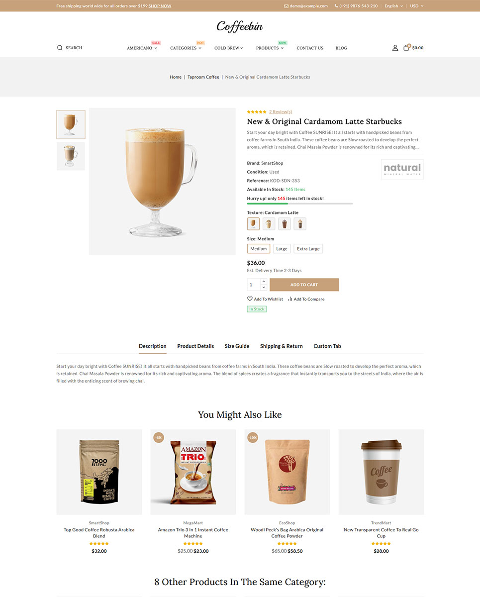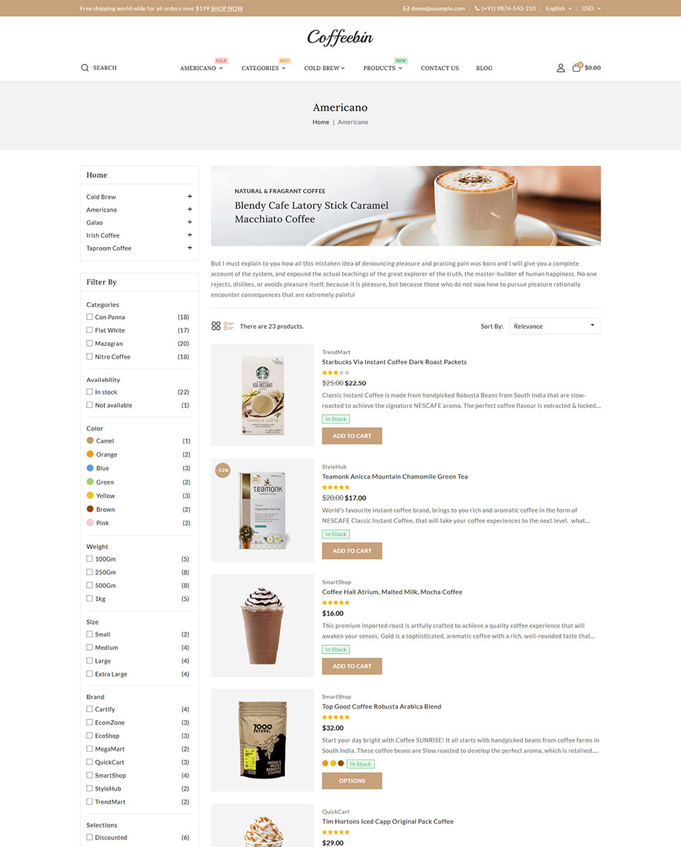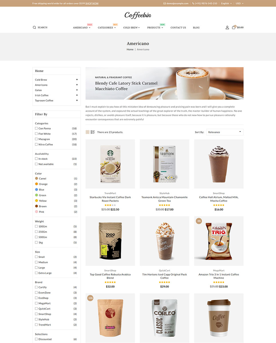 Coffeebin is fully SEO optimized to help your store rank better in search results and also supports multiple languages and currencies, making it perfect for international selling. Additionally, it is cross-browser compatible and provides a consistent shopping experience across all major web browsers and devices.
