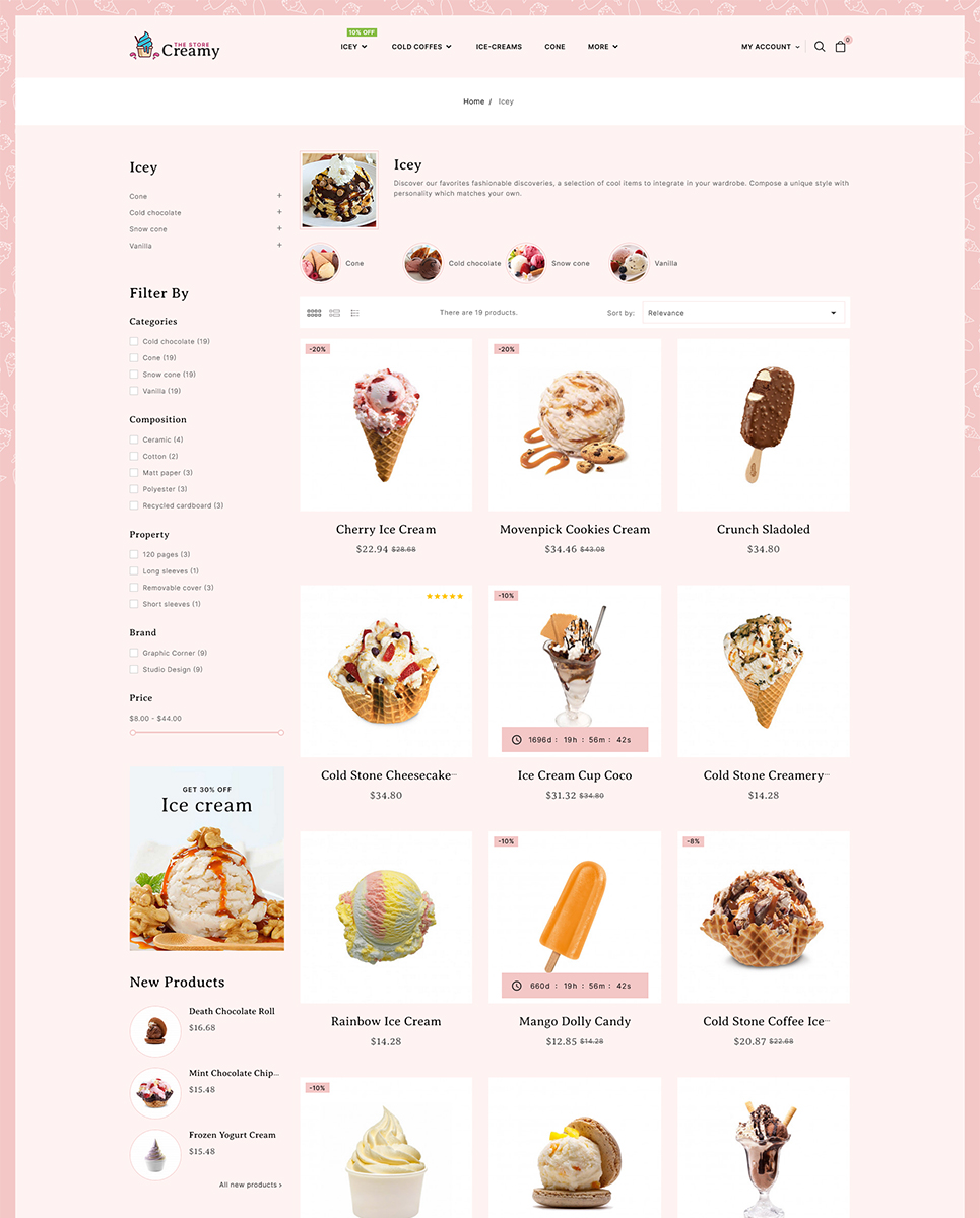 Creamy - Ice Cream, Drink, Cake Store Multipurpose Prestashop Store PrestaShop Theme