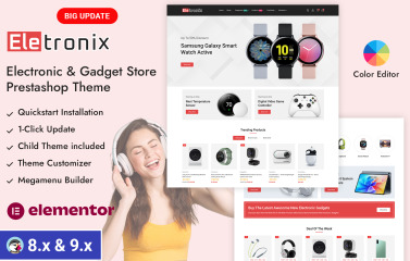 Eletronix – Online Electronic & Tech Store PrestaShop Responsive Theme is a modern, high-performance eCommerce theme built for electronics retailers, gadget stores, and technology-focused online businesses. Designed with a clean and professional aesthetic, Eletronix makes it easy to showcase complex tech products in a clear, organized, and visually appealing manner. Whether you’re selling smartphones, laptops, accessories, smart devices, or digital electronics, this theme provides a solid foundation for a trustworthy and conversion-focused online store.