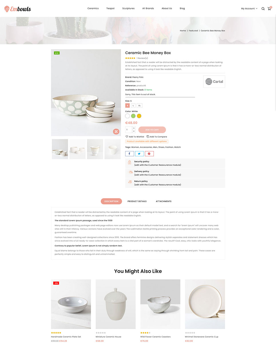 Embowls - Ceramic and Pottery Store Prestashop Responsive Theme PrestaShop Theme