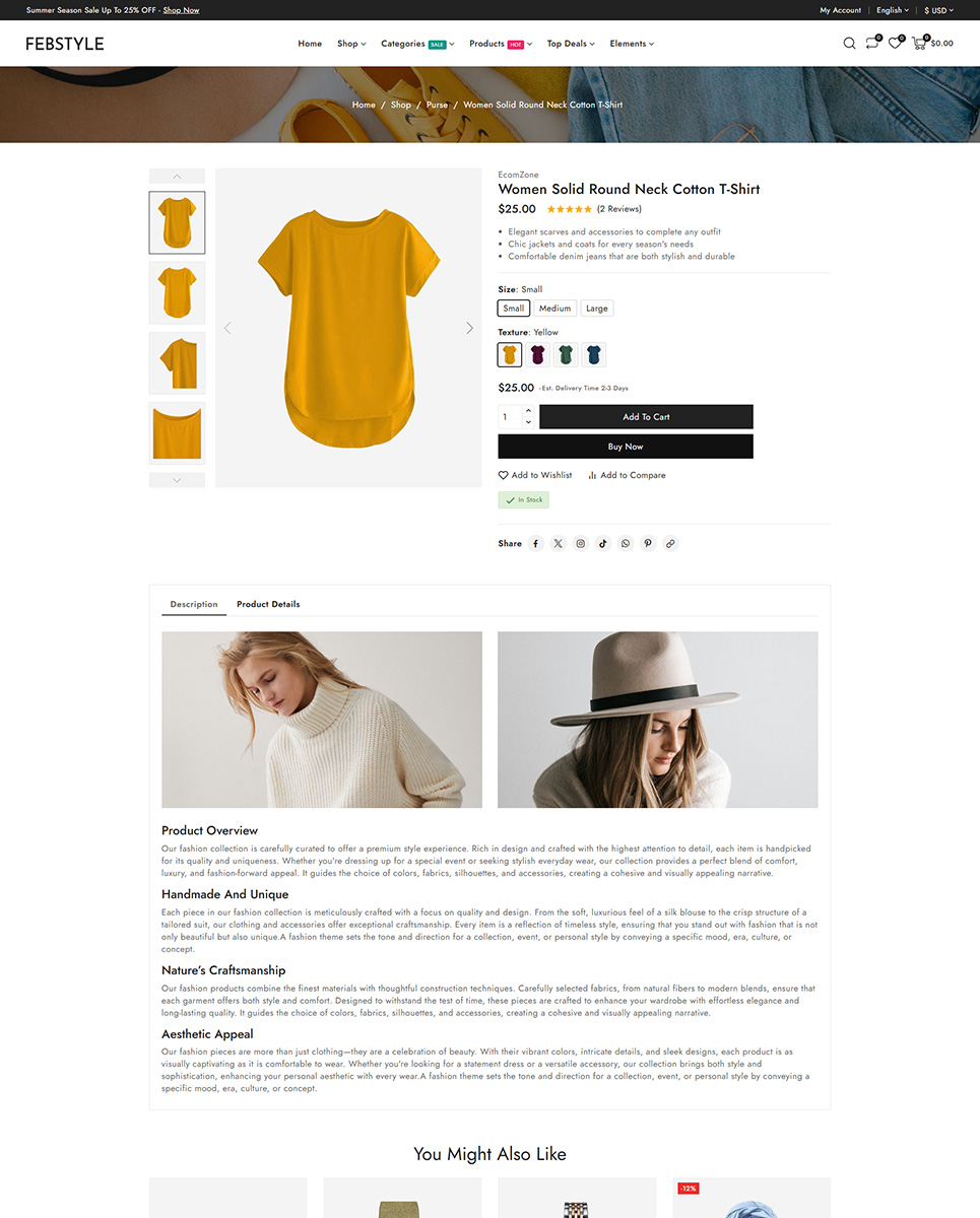 Fully responsive and mobile-optimized, Febstyle ensures your store looks polished and functions smoothly across all devices—from large monitors to mobile screens. The included Child Theme helps preserve custom changes during theme updates. With built-in SEO optimization, your store is better positioned to gain search visibility and attract more organic visitors.