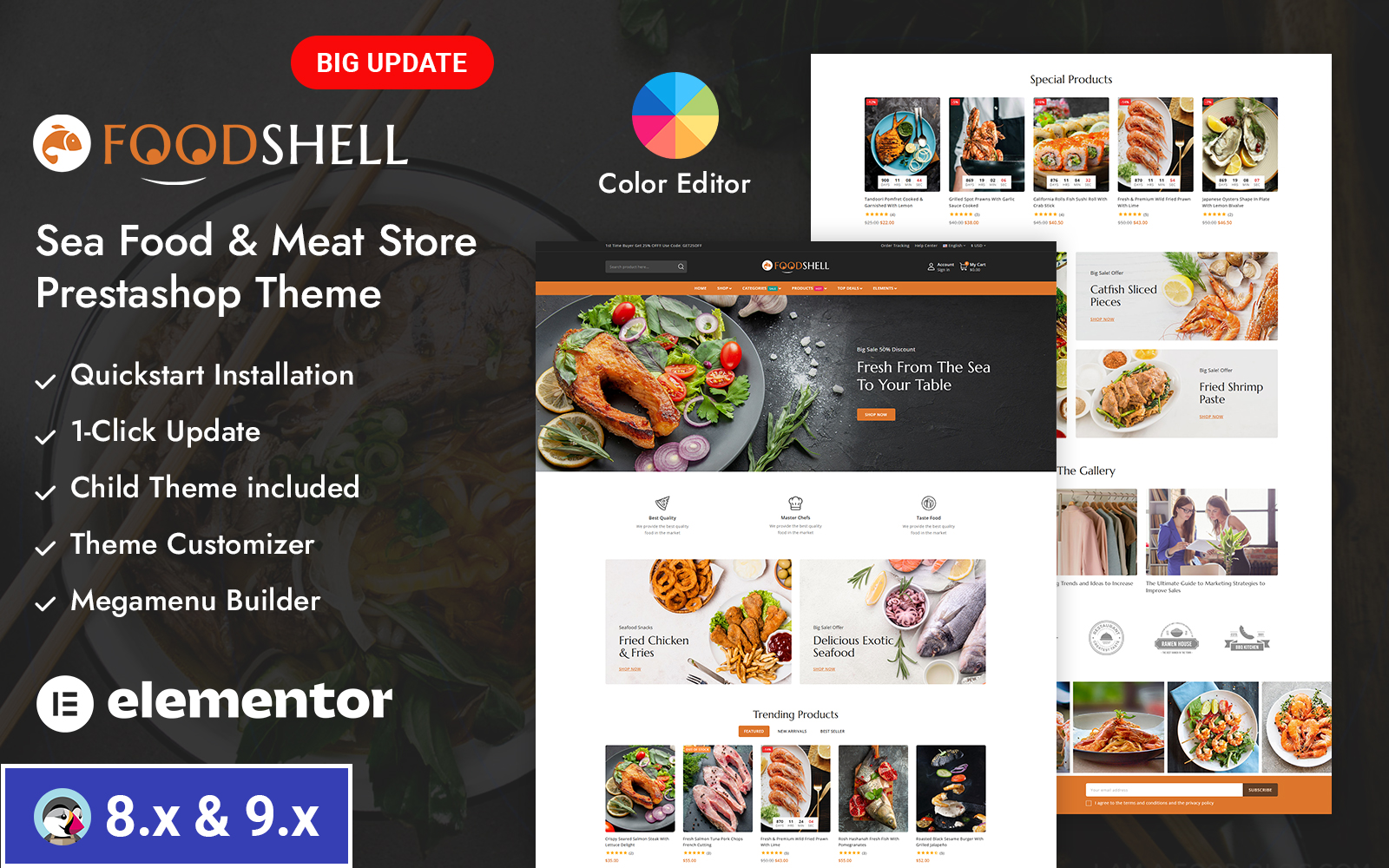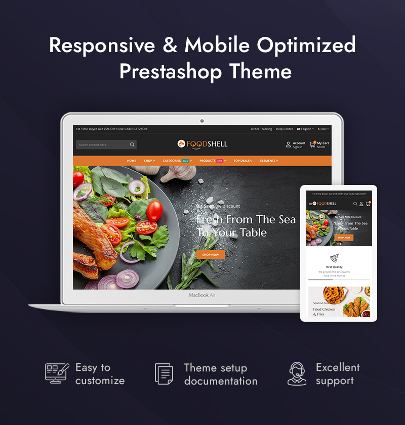 Foodshell – Sea Food Restaurant Store PrestaShop Responsive Theme is crafted specifically for seafood restaurants, fish markets, organic seafood suppliers, gourmet food stores, and coastal cuisine shops. With a fresh, clean, and appetizing layout, Foodshell brings an elegant presentation style that highlights the quality and freshness of your seafood products while delivering a smooth and engaging browsing experience.