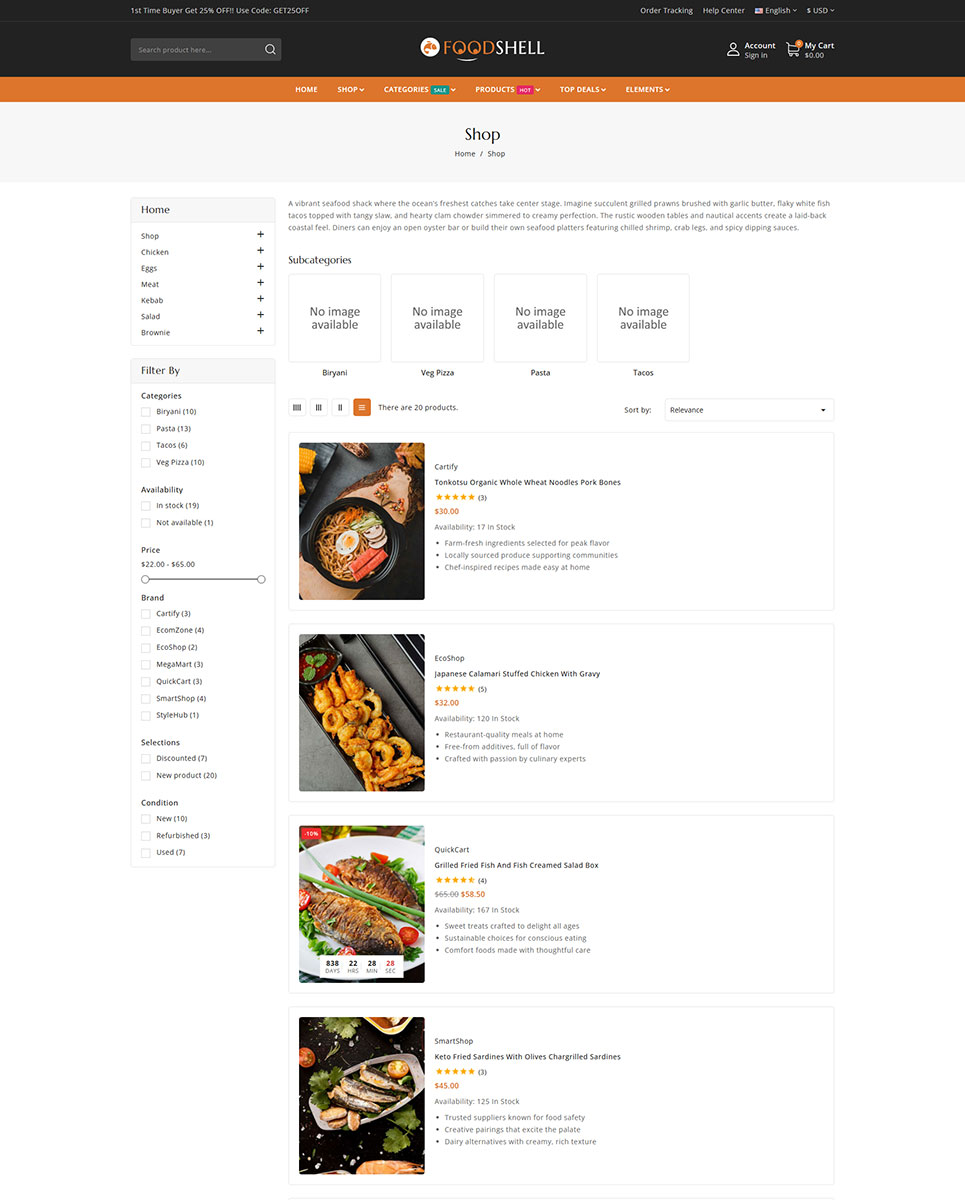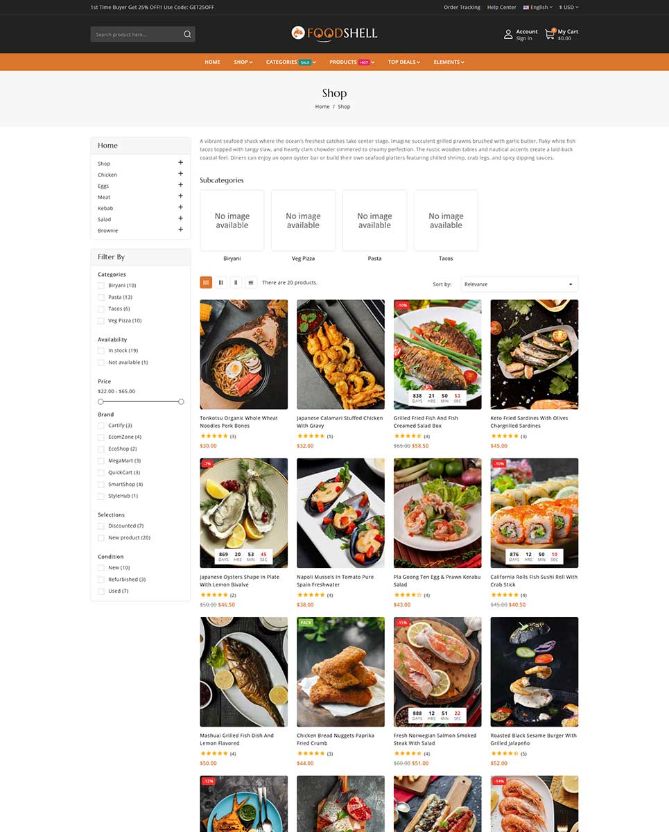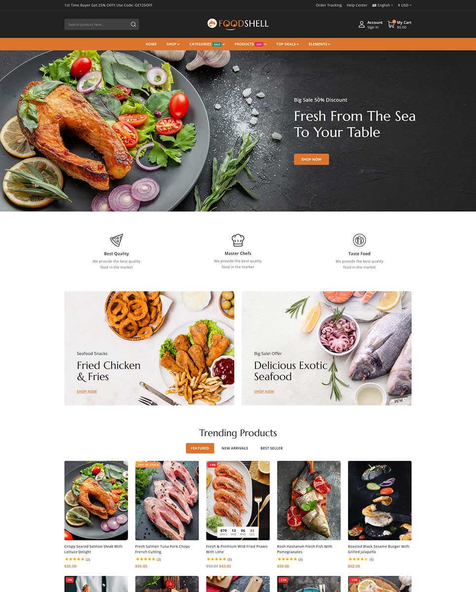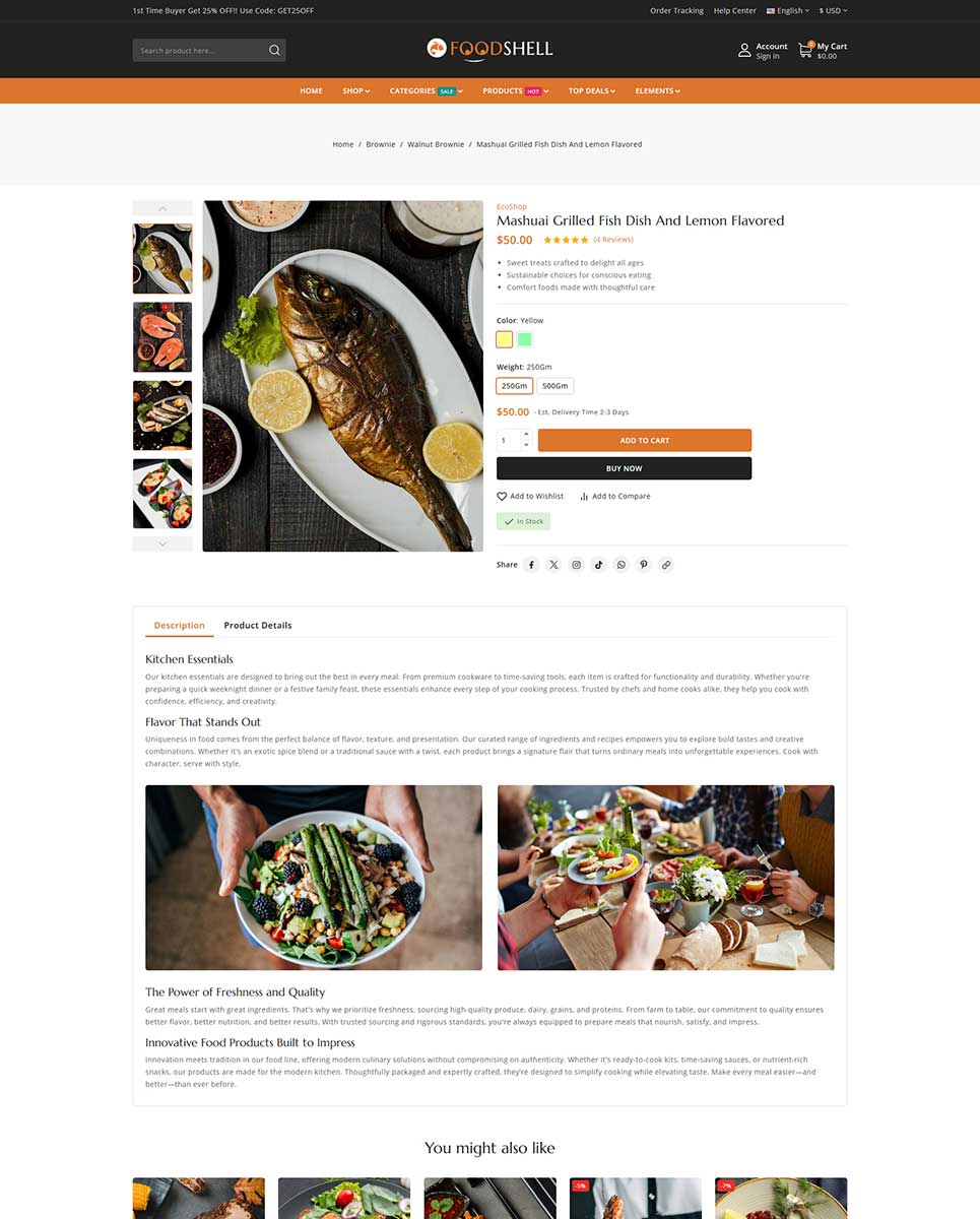 Optimized with SEO-friendly coding and improved loading performance, Foodshell helps your seafood store rank better, load faster, and convert more customers.