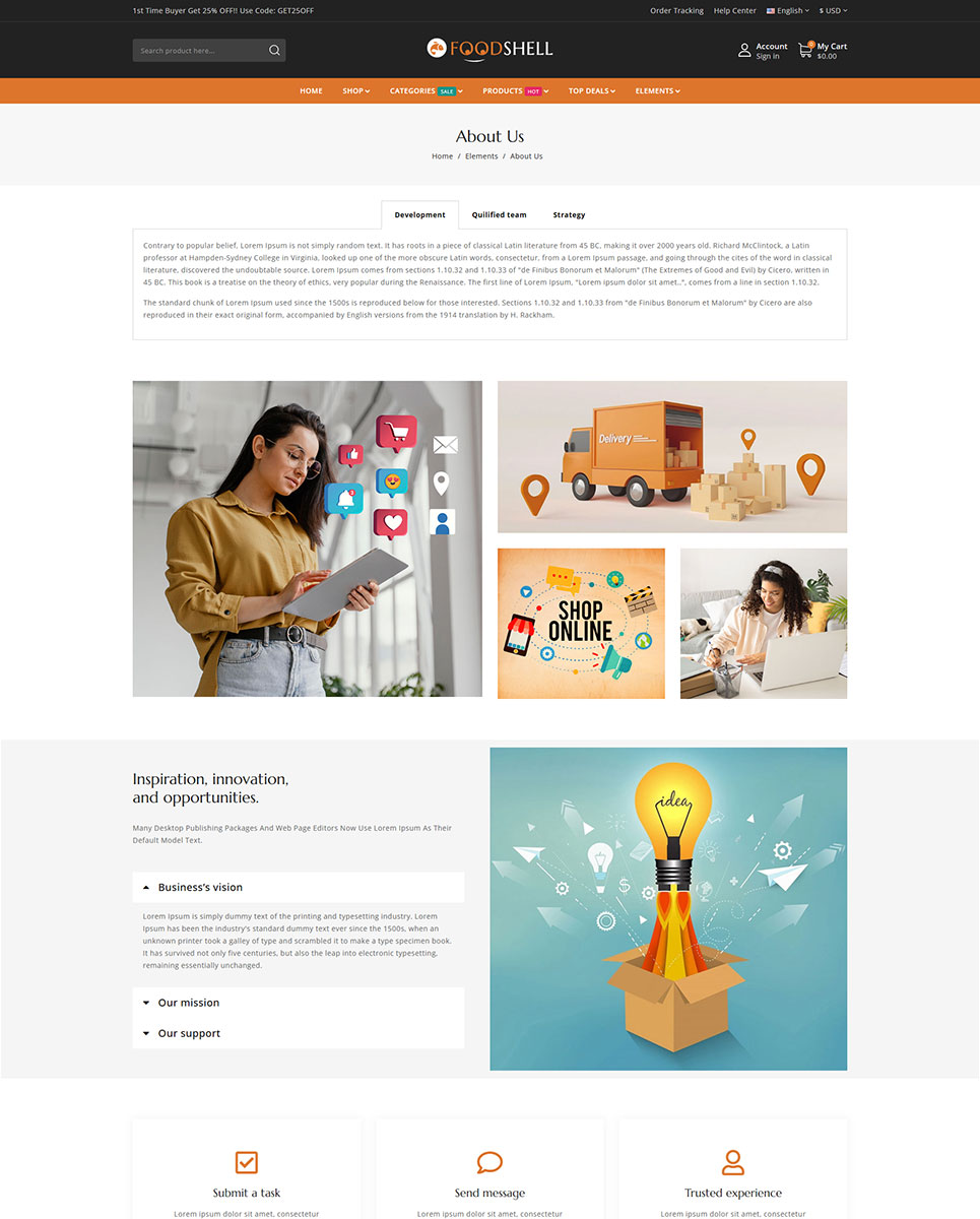Foodshell includes a Quickstart Installation Package for instant setup and a Theme Customizer Module to personalize colors, fonts, and layout styles in real time. Fully responsive, the theme ensures your store looks sharp and functions smoothly on all devices—desktop, tablet, and mobile.