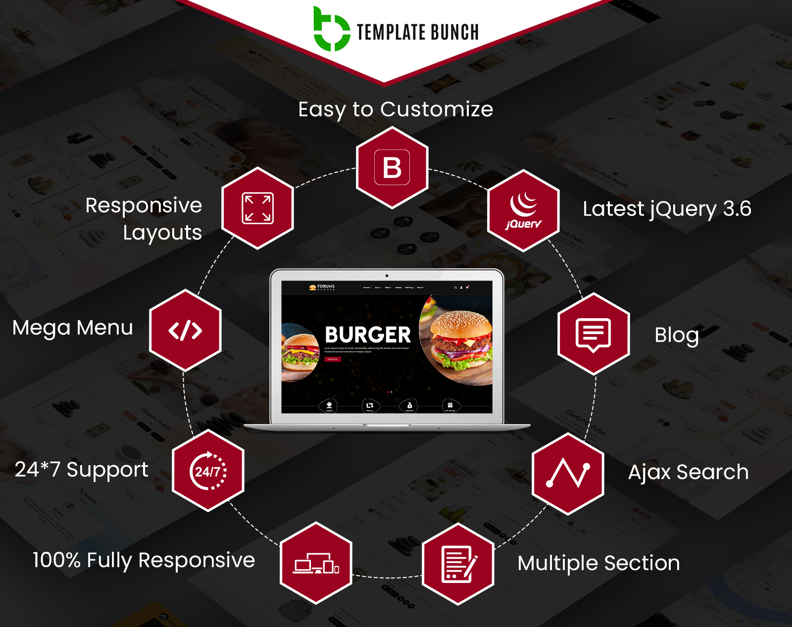 Forums Burger - Responsive Prestashop Theme for eCommerce Website Template - Description