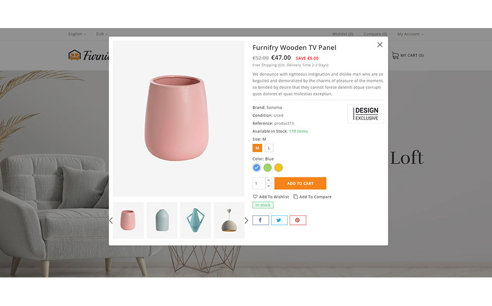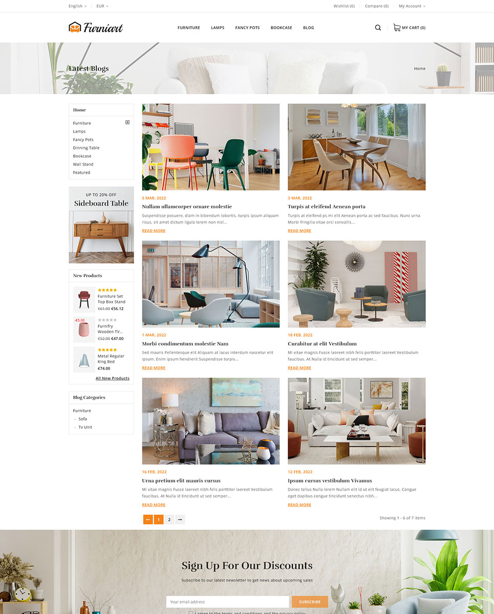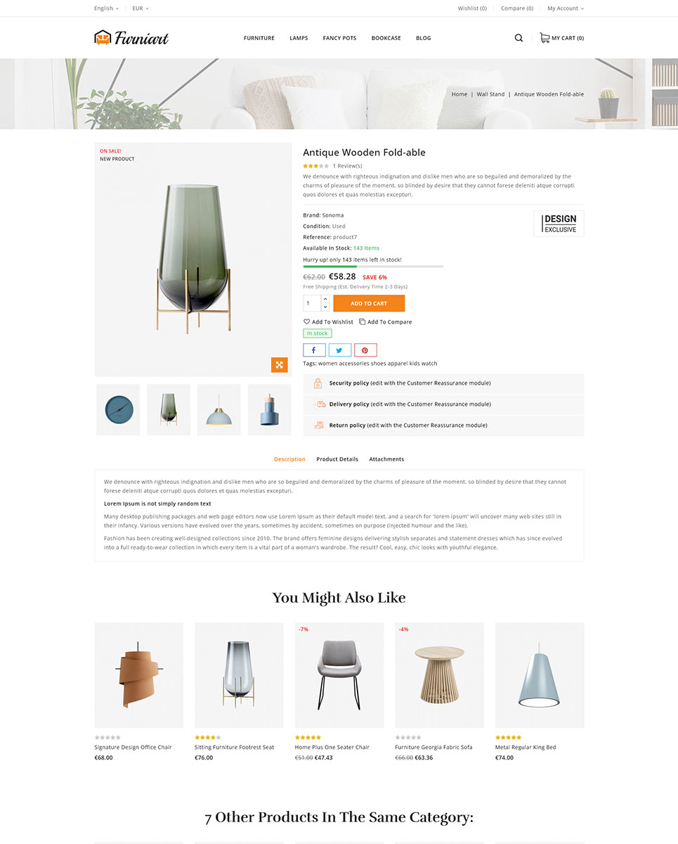 You could install this theme with sample data on your prestashop store with the use of the Quickstart (1-Click installation) package. After this, you can edit the theme's content and relevant graphics. It enables you to store setup rapidly. Furniart is an SEO Professional with user-friendly URLs, which enables you to increase relevant traffic and search rankings. Download this theme right away to launch your online business!