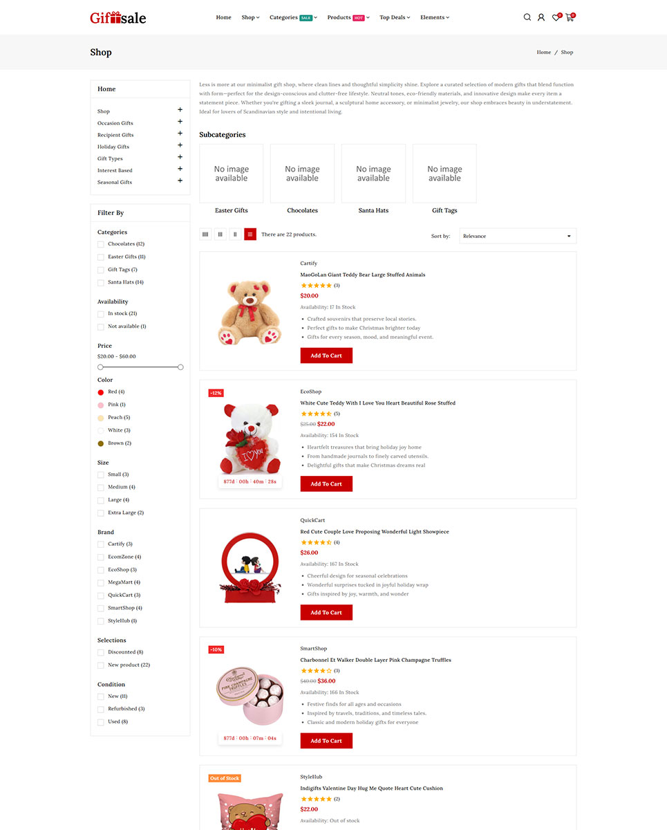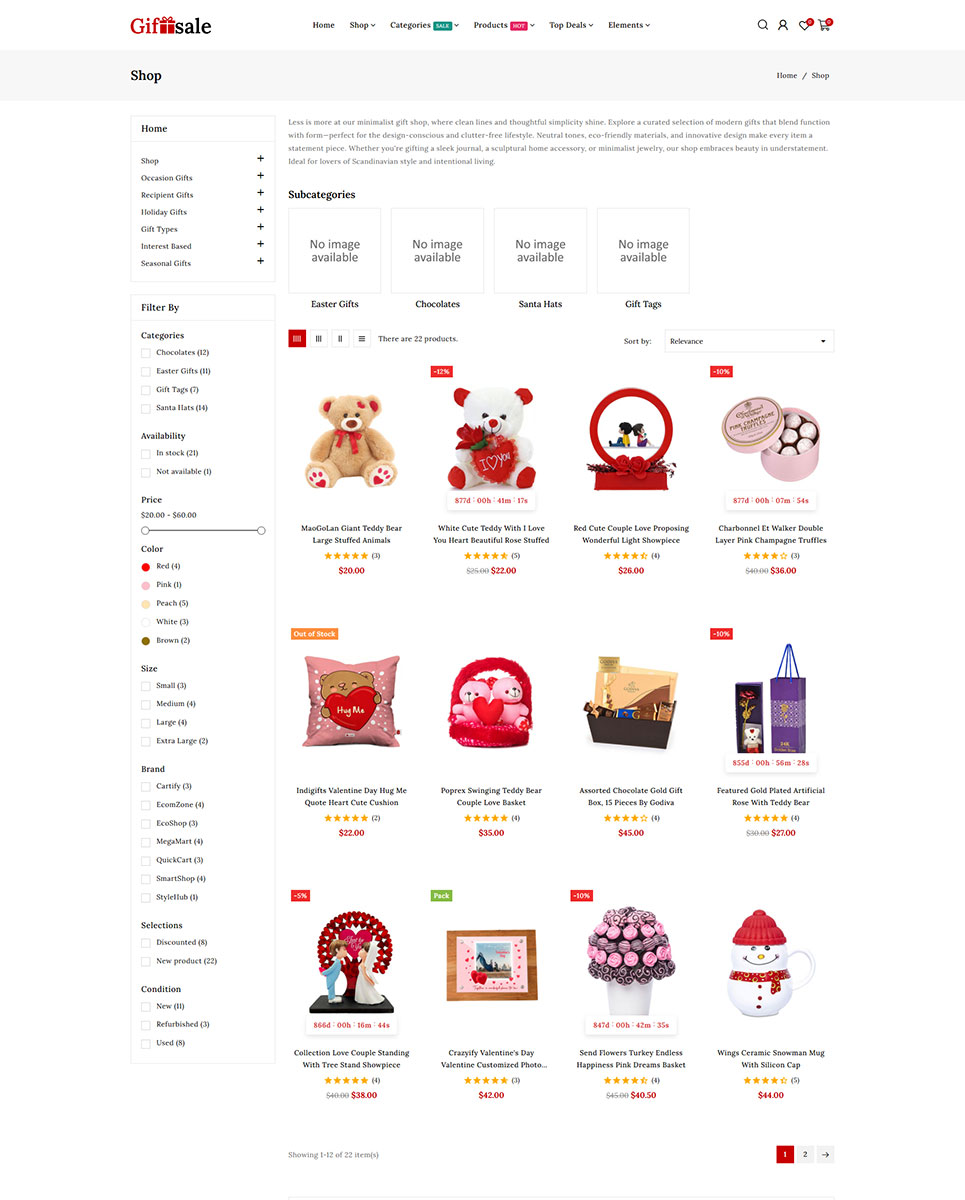 Equipped with AJAX-powered features like instant search, product filters, and quick view, Giftsale provides a fast and seamless shopping experience. The integrated Mega Menu Builder makes navigation simple and elegant, helping customers easily explore product categories and discover perfect gifts.