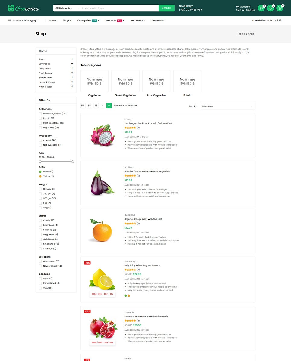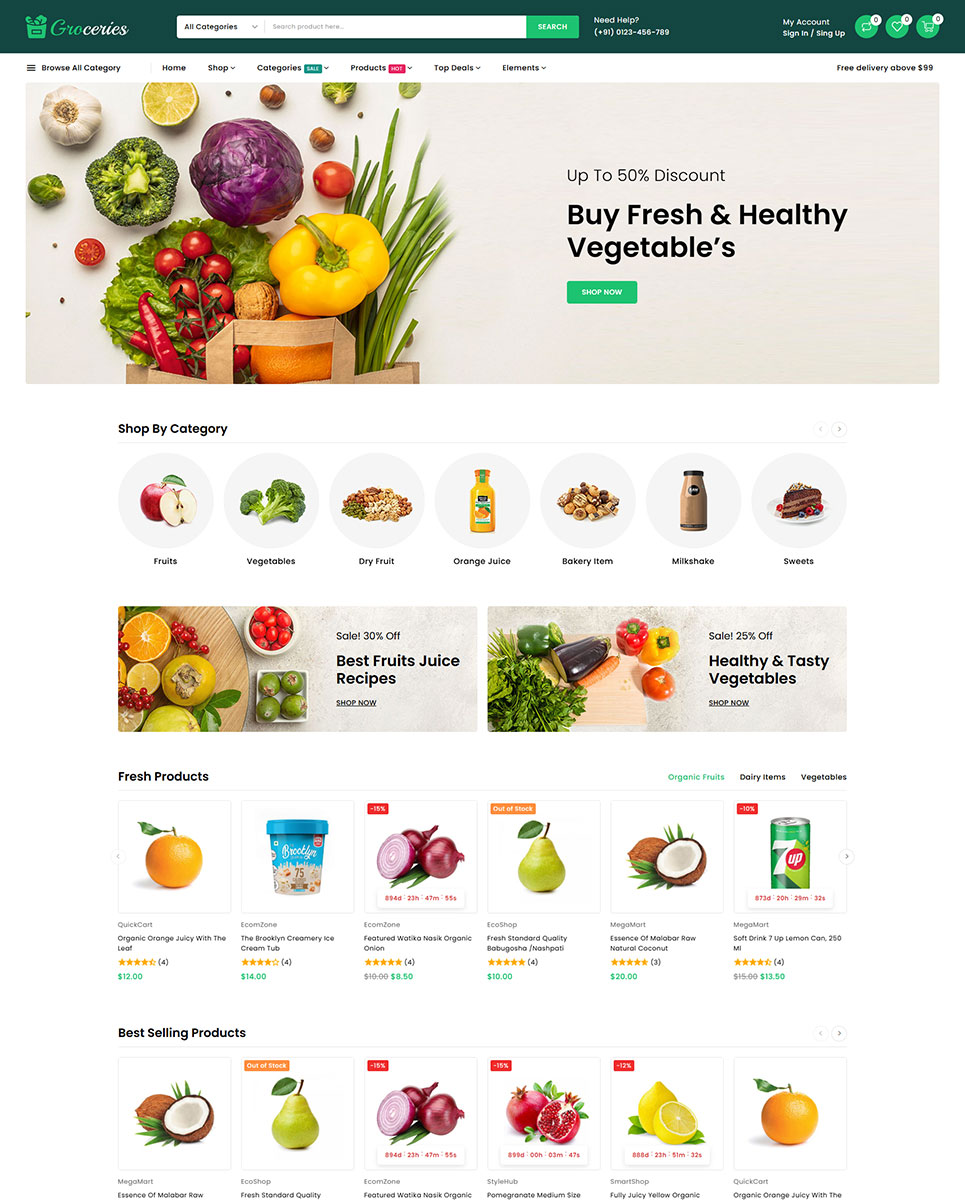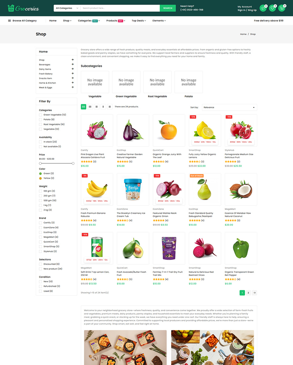 Whether you are running a local grocery shop, a large-scale supermarket, or an online store delivering daily essentials, Groceries provides a reliable, modern, and easy-to-manage foundation for delivering a smooth and pleasant shopping experience to your customers.