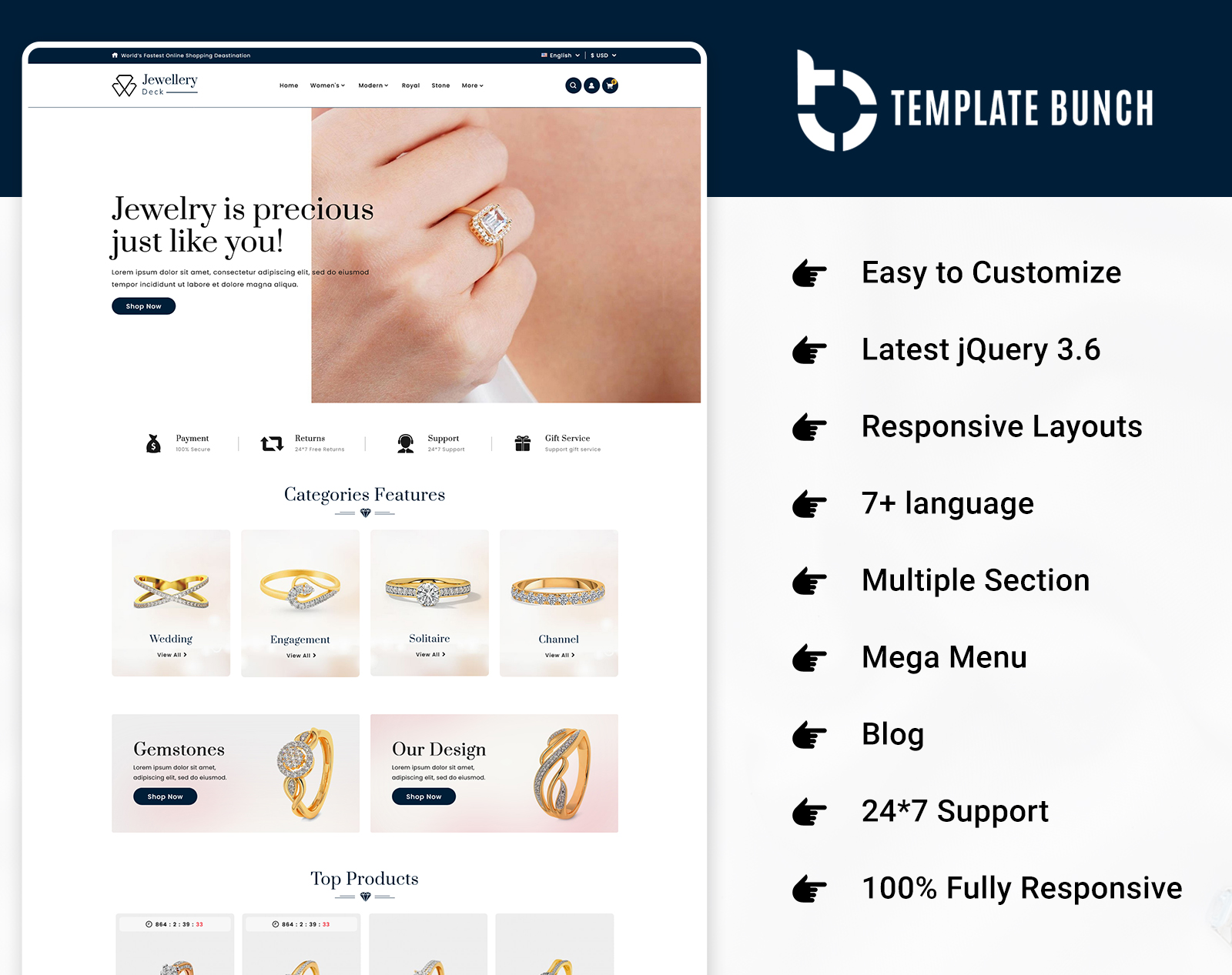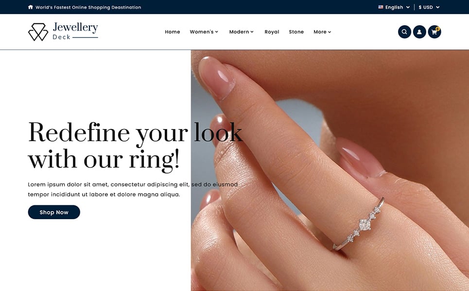 Whether you're just starting or looking to elevate your jewelry brand, Jewellery Deck delivers a high-end shopping experience with ready-made homepage layouts, minimal aesthetic, and unmatched flexibility. Compatible with all modern devices, this theme is the ideal solution for a professional and captivating eCommerce presence.