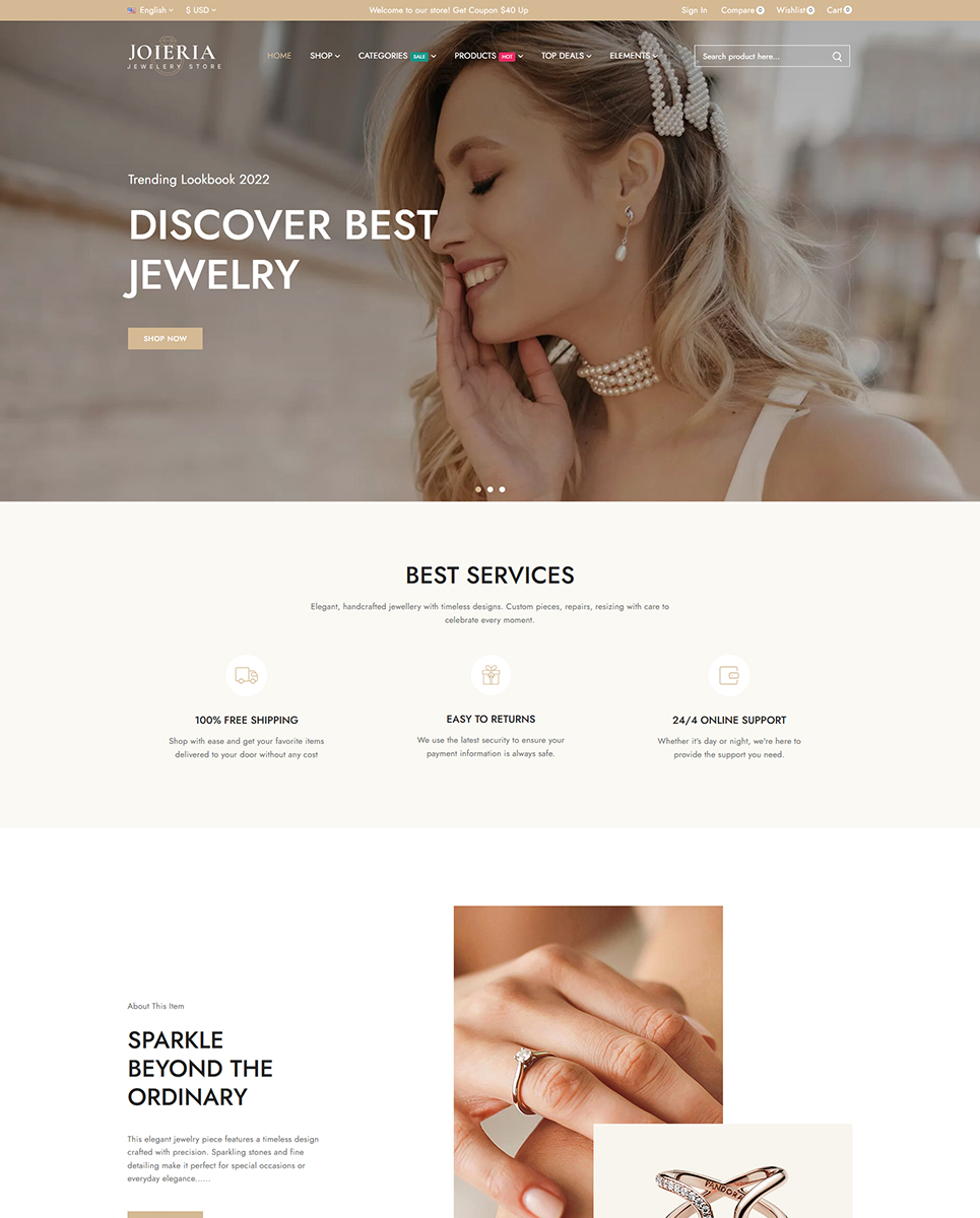 Joieria is a visually stunning theme with a magnificent design and solid functionality to form a PrestaShop store. It is indeed appropriate for jewelry stores, diamond accessory stores, fashion retailers, and other related businesses. The theme contains all of the adequate modules to effectively improve your jewelry store. You may also make changes to this handy template in real-time. You don't even need any technical knowledge to accomplish it. Also, the simplistic & engaging user interface will deliver additional benefits to you!