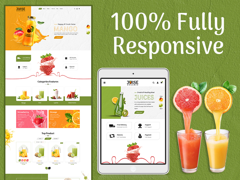 Juise Organic supports multiple languages, Boxed & RTL layouts, and a CSS3 table-less design, making it perfect for a global audience. The theme includes well-commented files, free Google Fonts, Icofont icons, and detailed documentation. Get free updates and 24/7 support, ensuring your store runs smoothly with the latest features.