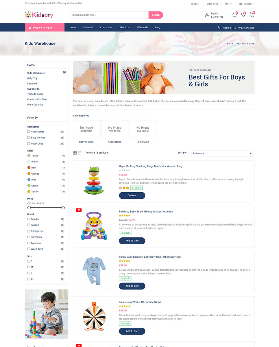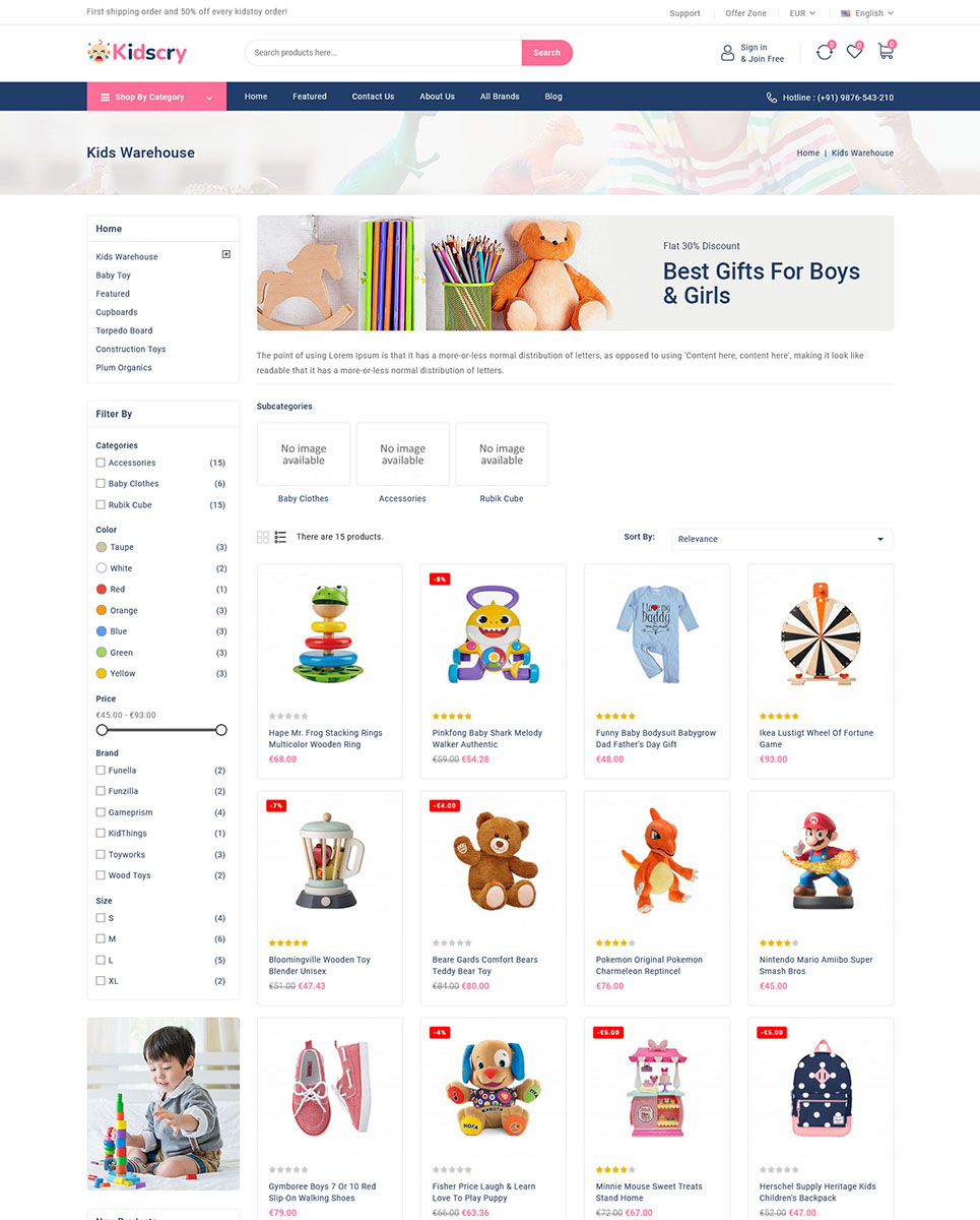 KidsCry is a playful, bright, and beautifully crafted PrestaShop responsive theme designed for children’s clothing stores, baby boutiques, toy shops, and lifestyle kids’ brands. With its cheerful color palette, friendly typography, and engaging design elements, KidsCry creates a warm and joyful shopping experience that appeals to both parents and kids.