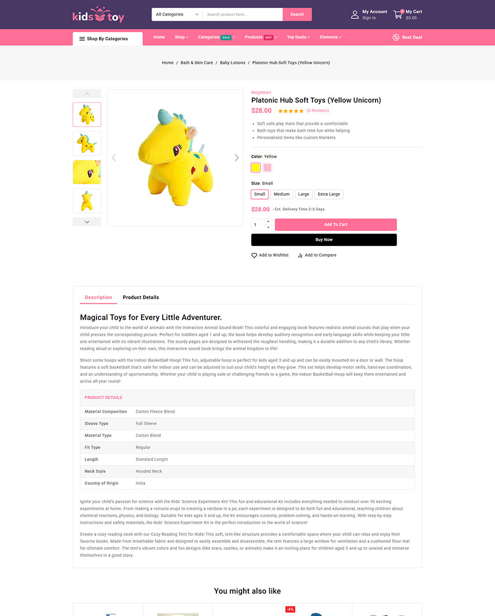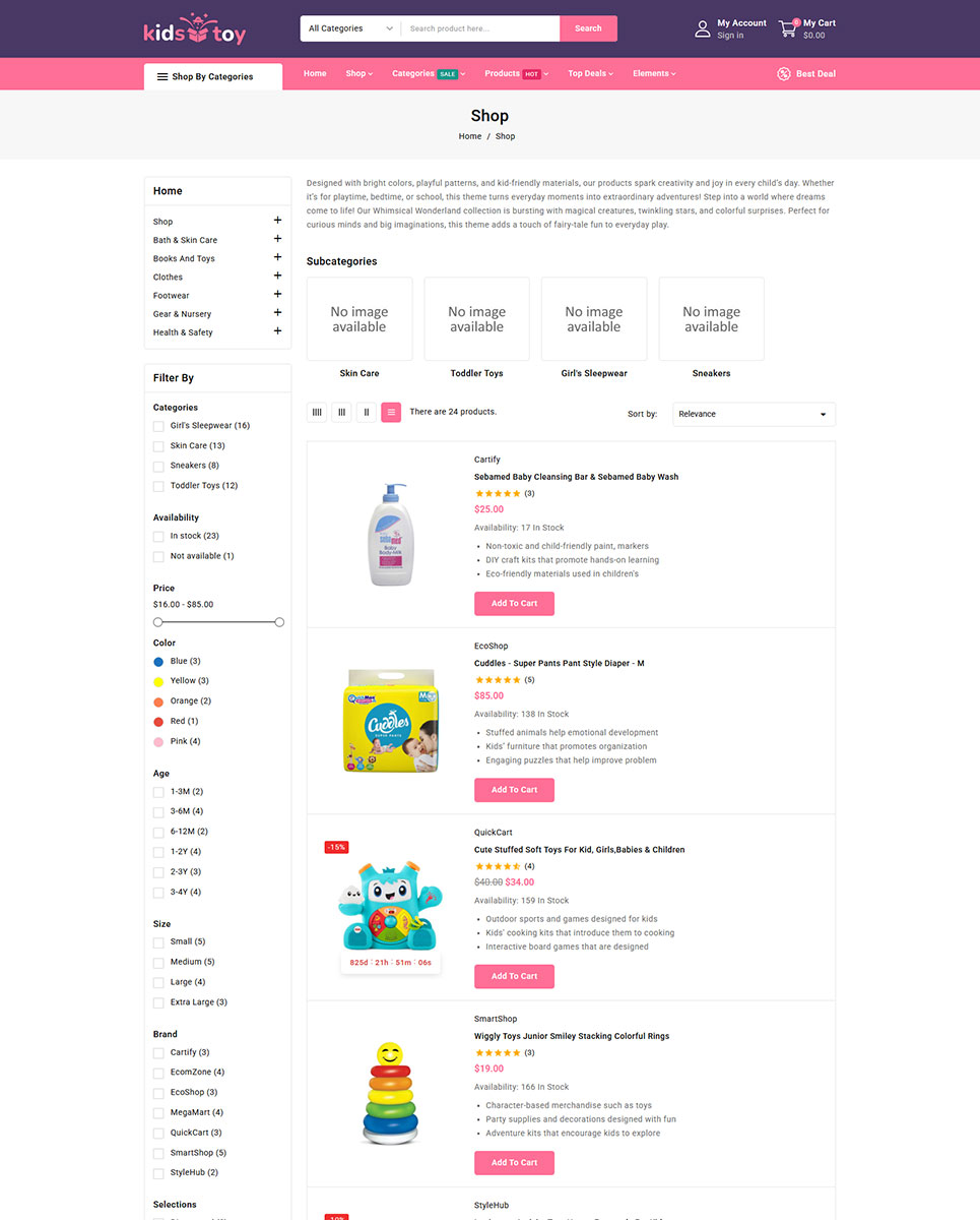 KidsToy includes both Quickstart Installation for easy demo import and Manual Installation files for advanced setup. To enhance the user experience, the theme is loaded with AJAX-based features such as quick view, product filters, live search, and add-to-cart functionality—ensuring smooth and fast navigation throughout the store.
