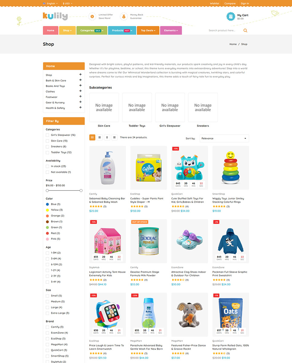 Whether you're selling trendy kids’ outfits, soft toys, learning games, or baby essentials, Kulily provides a charming, lively, and conversion-focused solution to build the perfect kids' online store.