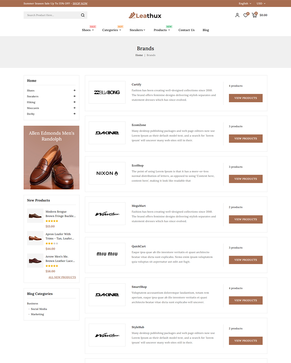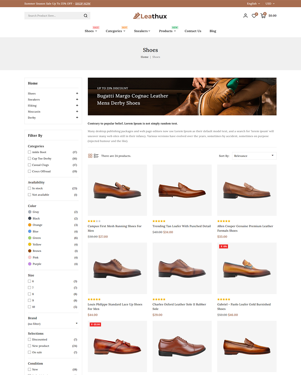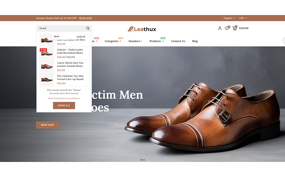 Leathux - Leather Shoes and Footwear Store PrestaShop Responsive Theme is a sleek, sophisticated, and fashion-forward theme crafted exclusively for online footwear retailers. Whether you're selling luxury leather shoes, casual sneakers, boots, sandals, or designer accessories, Leathux offers the perfect digital storefront to elevate your brand and captivate customers.